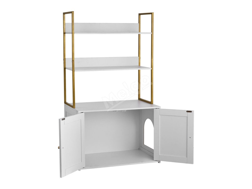 Skrinka na mačaciu toaletu 70 cm, kovové nohy, 2 police, vodotesná