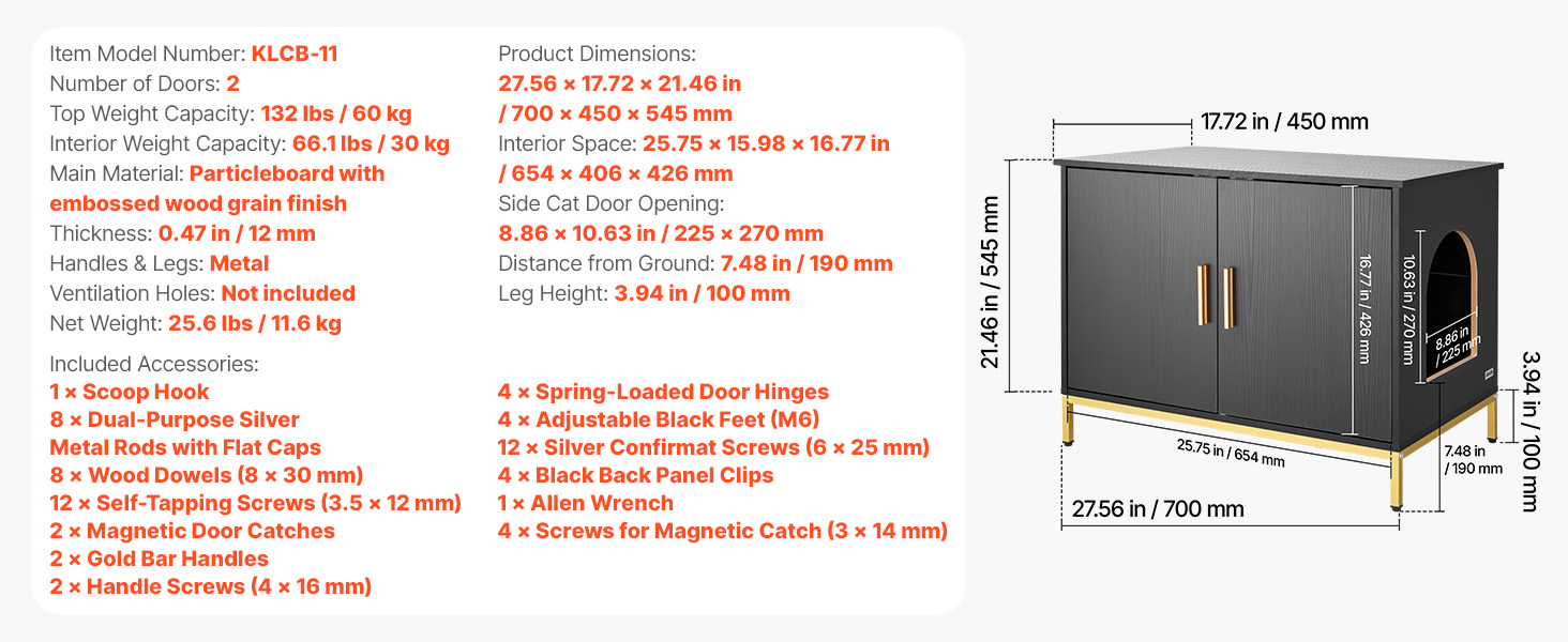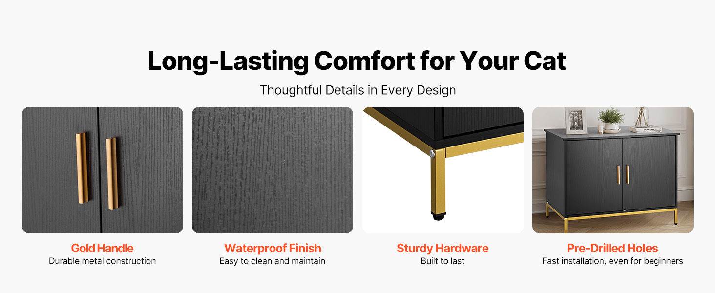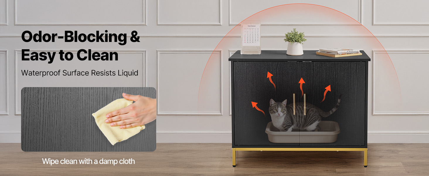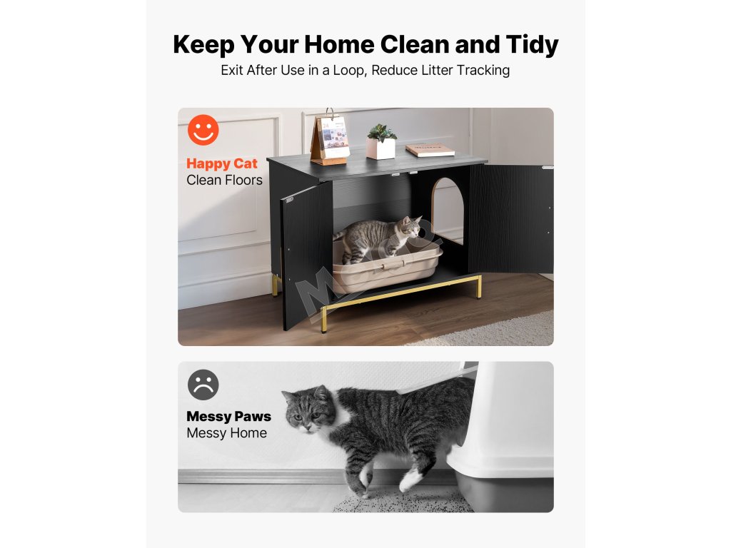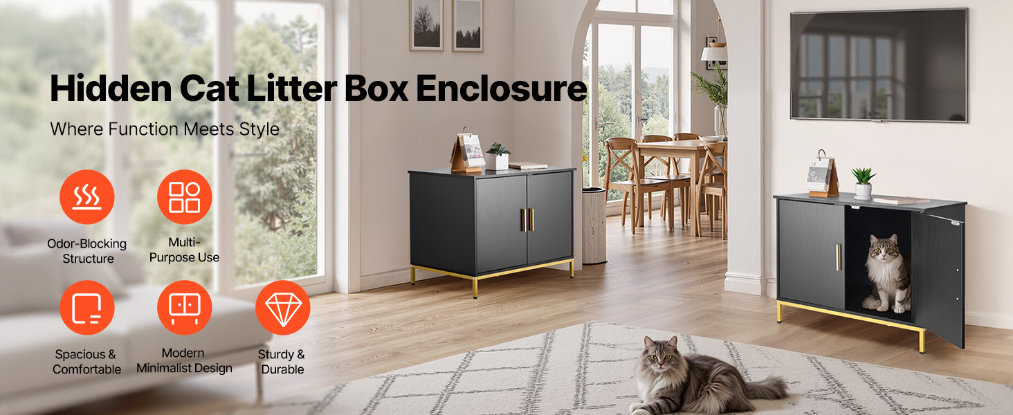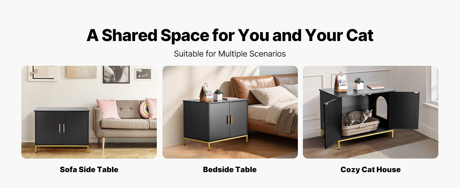 Náš skrytý nábytok pre mačky slúži ako skrinka na podstielku, nočný stolík, skrinka pri pohovke a domček pre mačky, všetko v jednom. Ľahko sa začlení do rôznych štýlov domácnosti, ako sú obývacie izby a spálne.