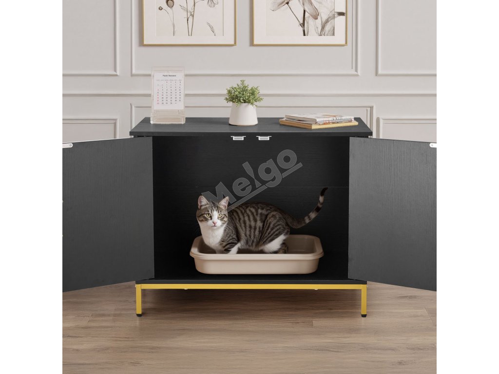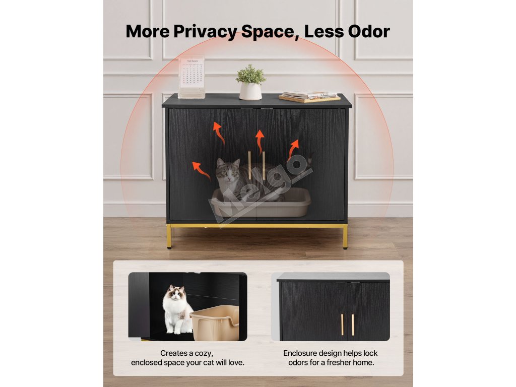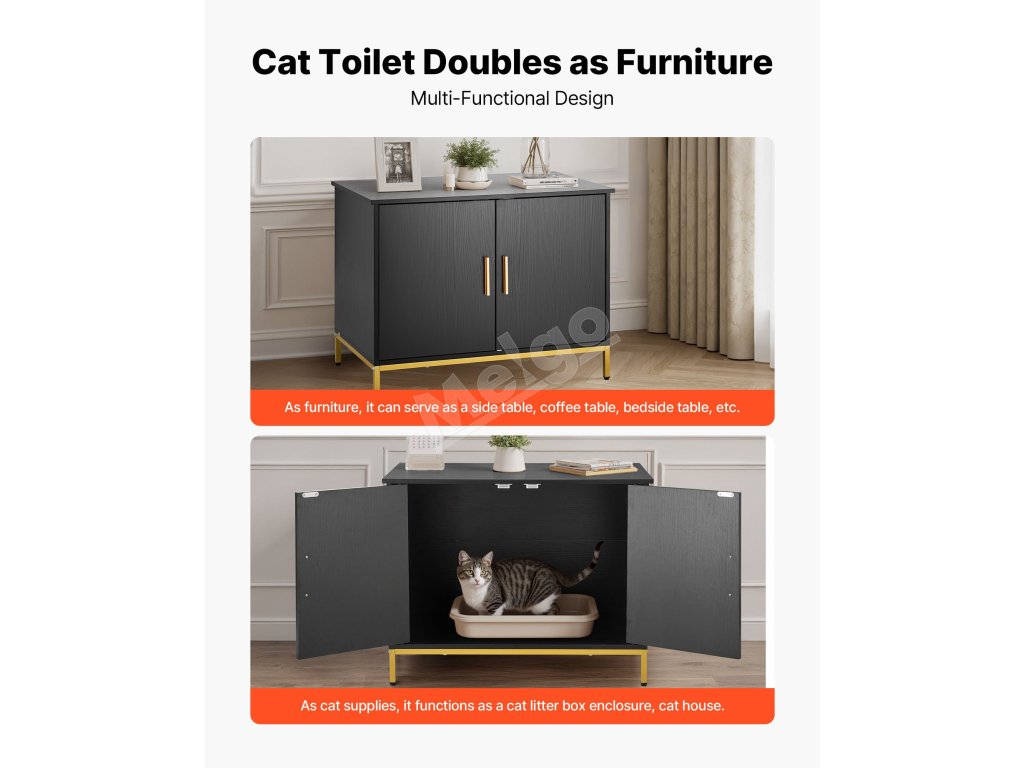Táto skrytá skrinka na mačacie záchody sa flexibilne premení na bočnú skrinku v severskom štýle alebo skrinku na TV. Elegantne blokuje zápach a vysypané mačacie stelivo a zároveň udržiava váš domov čistý a štýlový.