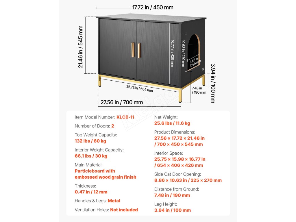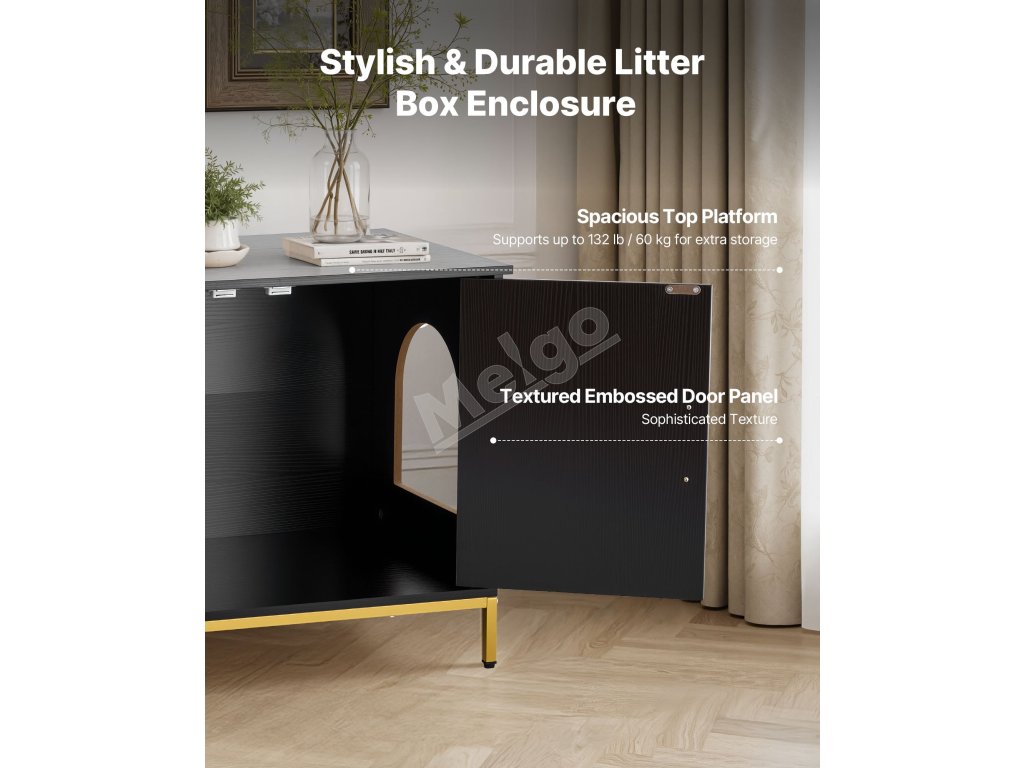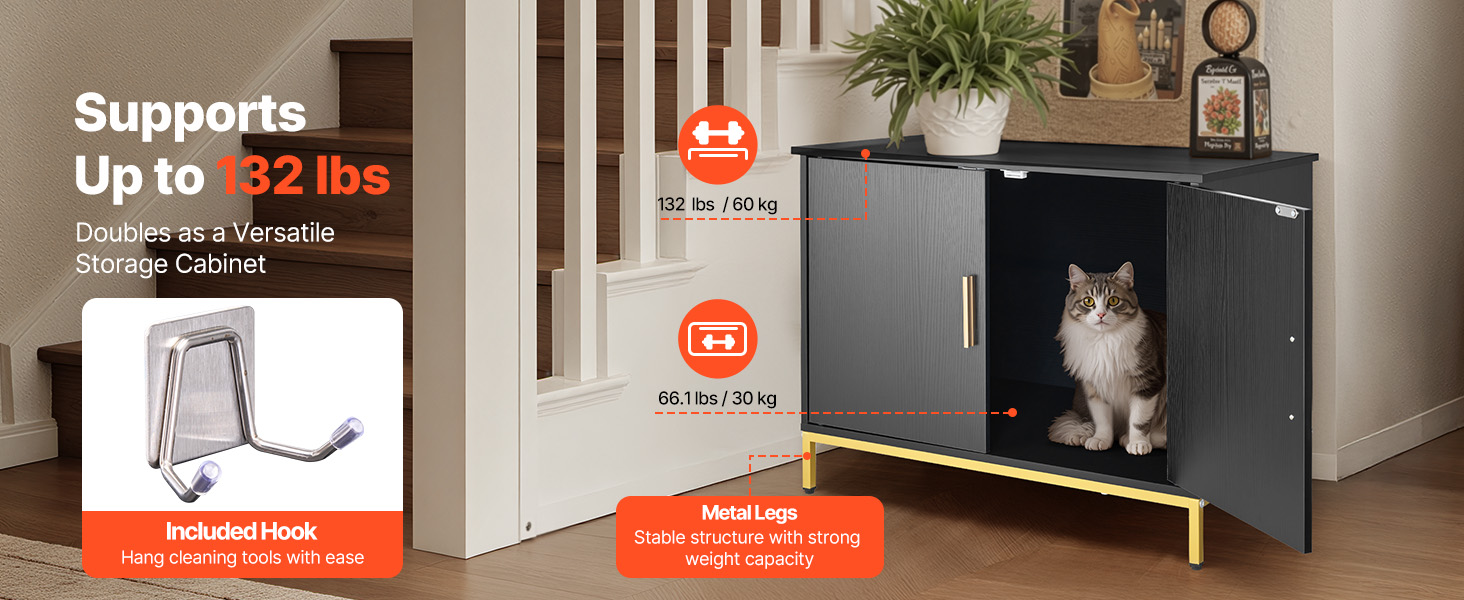 Horná plošina nášho nábytku na ohradu na odpadky unesie až 132 kg, na ktorú možno ľahko umiestniť knihy, dekorácie a iné predmety. Kovové nohy v spodnej časti zabezpečujú stabilitu a odolávajú otrasom aj pri skokoch veľkých mačiek.