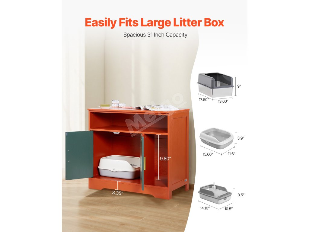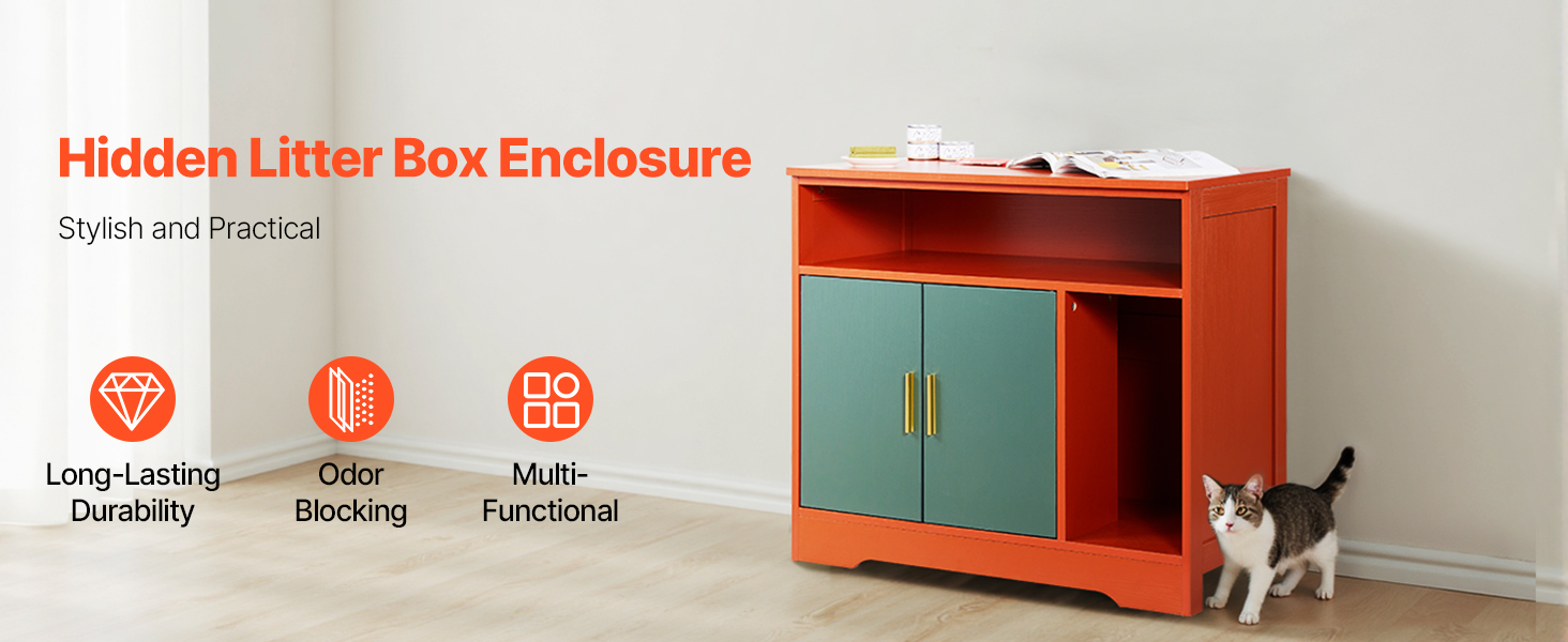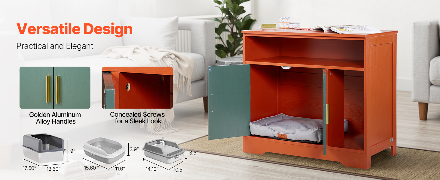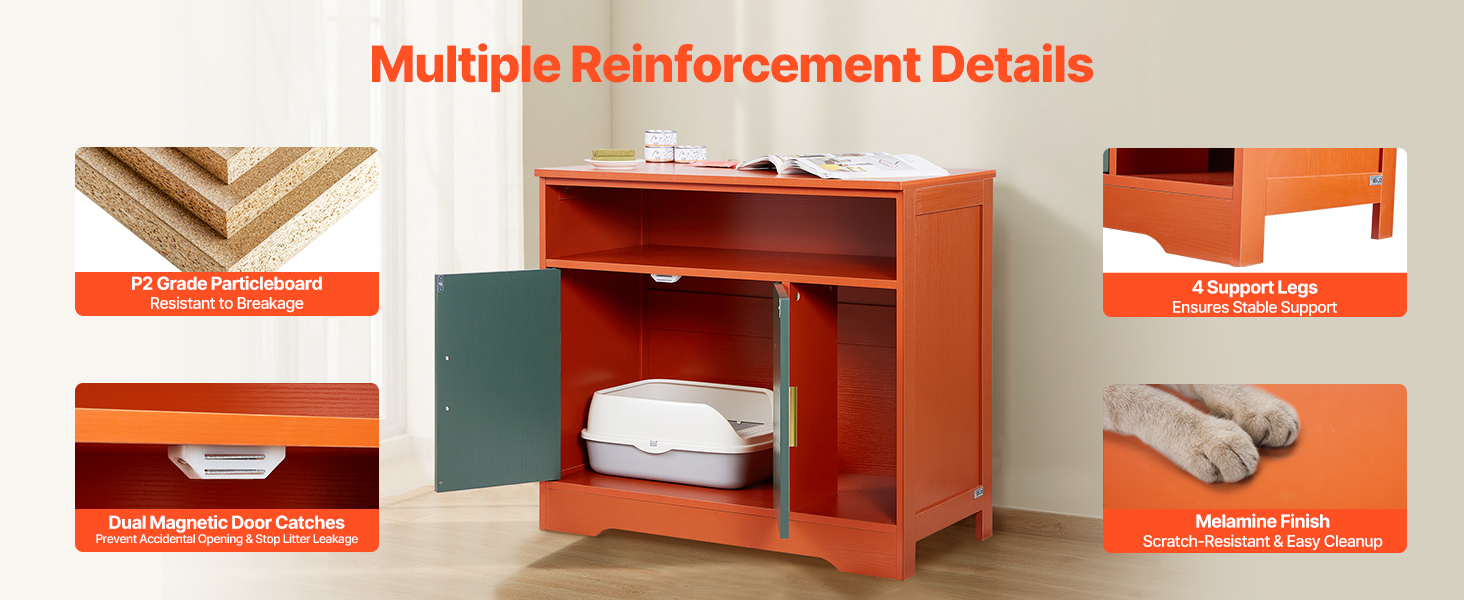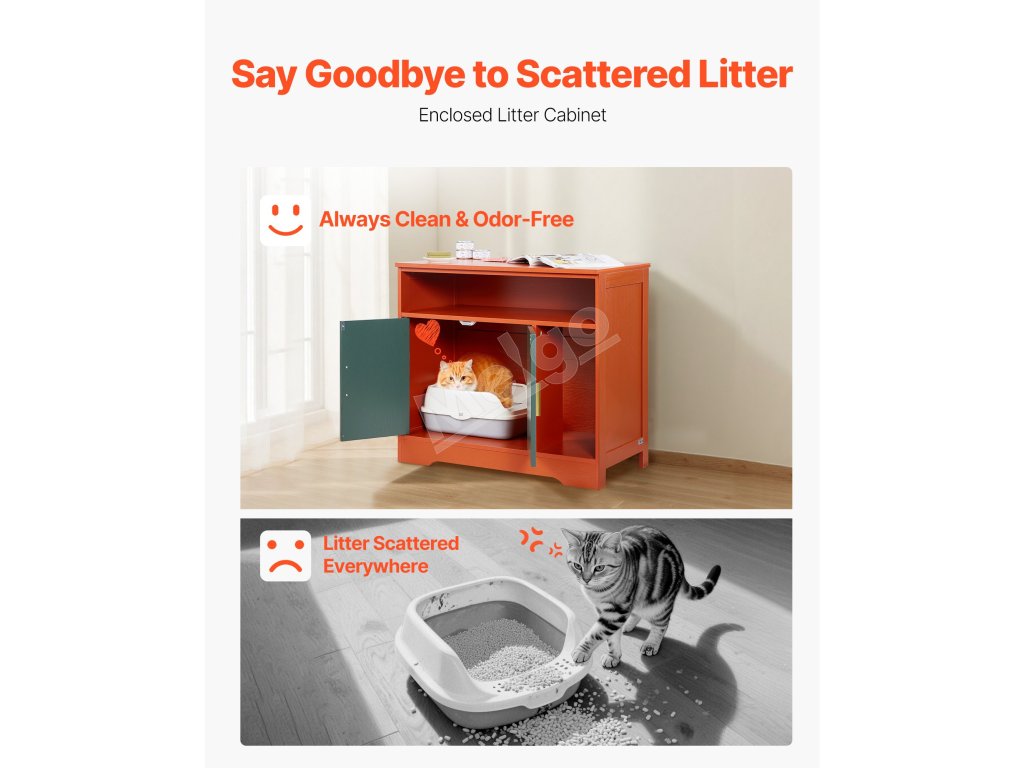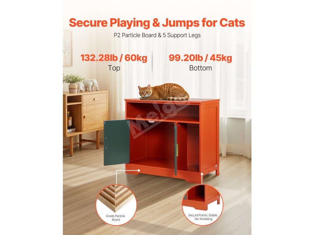 Skrytá, úplne uzavretá konštrukcia udržuje zápach vnútri a prach vonku, čím pomáha udržiavať poriadok vo vašej obývačke. Je vyrobený z robustných materiálov odolných proti poškriabaniu a unesie až 132 libier na bezpečné skákanie mačiek. Priestranný interiér a nízky vstup uľahčujú vstup a výstup väčším alebo starším mačkám.