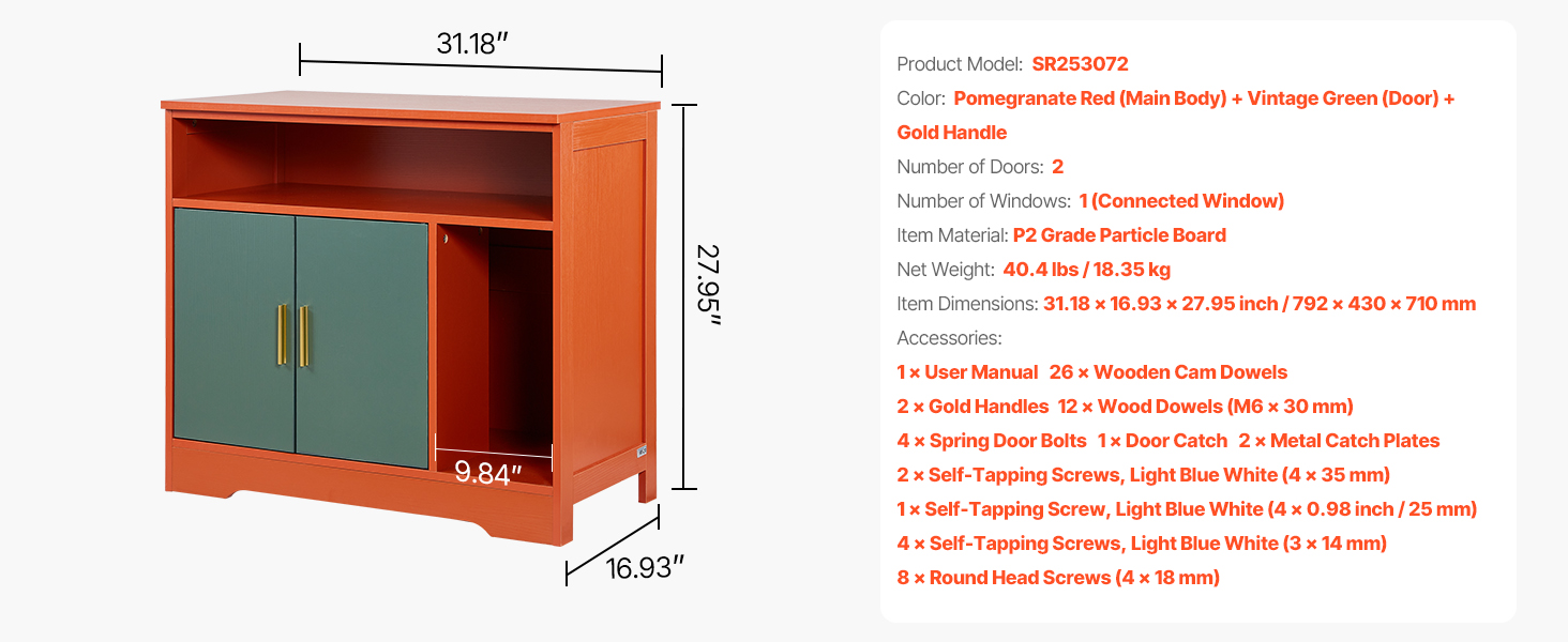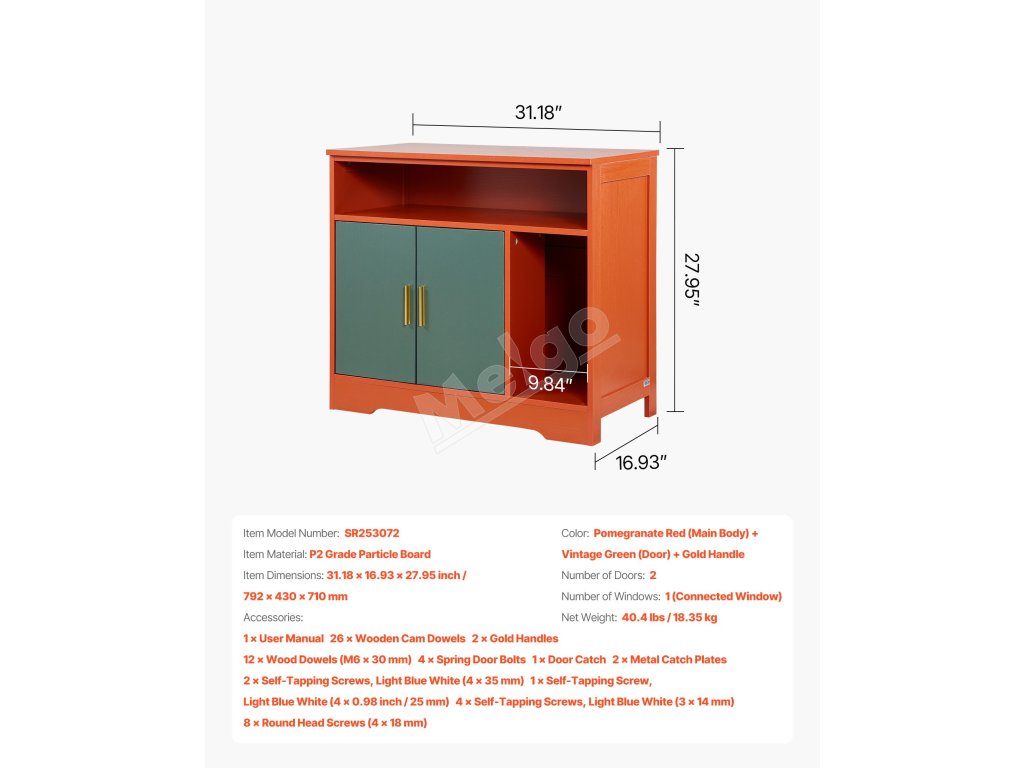 | Farebný štýl | Granátovo červená (hlavné telo) + zelená Vintage (dvere) + zlatá rukoväť |