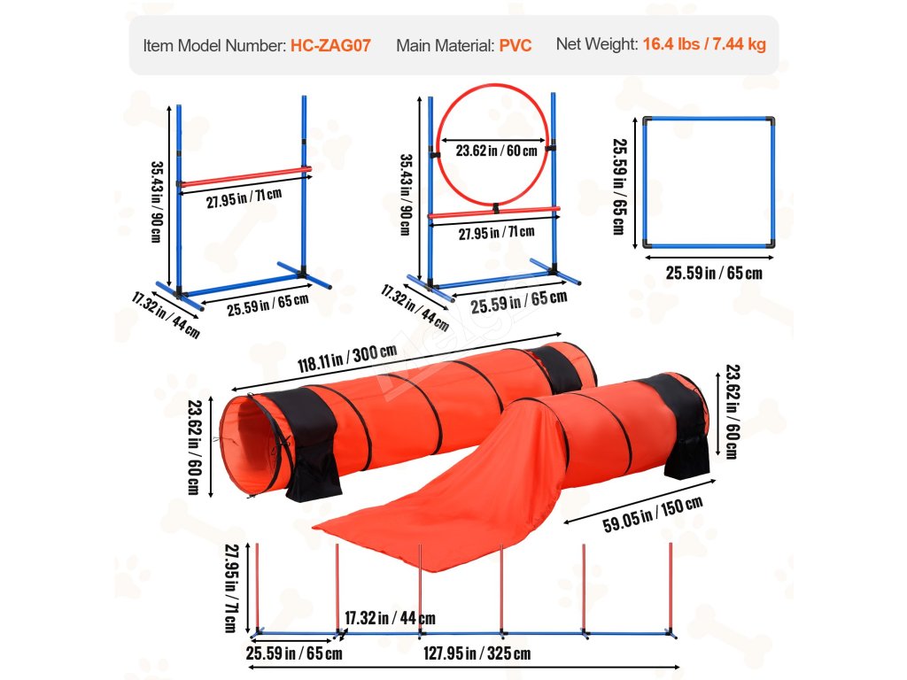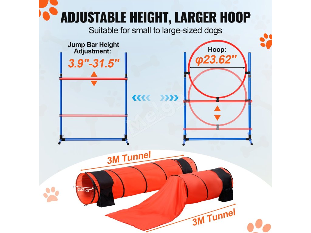 Trénujte obratnosť a poslušnosť svojho psa a zároveň posilňujte svoje puto s domácim miláčikom. Súprava je s vylepšenou zosilnenou konštrukciou, vďaka ktorej je stabilná a je menej pravdepodobné, že sa počas používania rozkýve alebo prevráti. Odhaľte plný potenciál svojho psa s našou súpravou agility - kde sa zábava stretáva s tréningom!