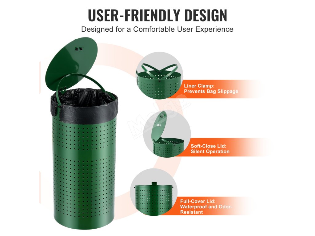 Náš uzavretý odpadkový kôš udrží pachy na uzde, čím zabezpečí, že váš priestor zostane bez škvŕn a svieži - nikto nechce mať smradľavý dvor!
