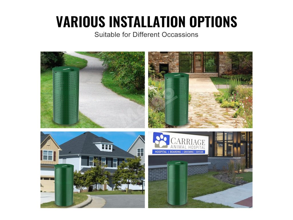 Tento odpadkový kôš na psie výkaly sa prispôsobí rôznym prostrediam a je pripravený splniť vaše potreby kedykoľvek a kdekoľvek. Pohodlie je na dosah ruky!