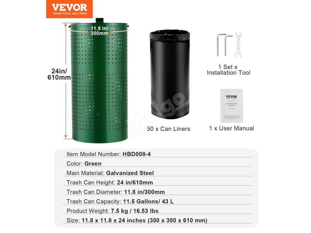 Tento odpadkový kôš na psie exkrementy je vyrobený z vysokokvalitnej pozinkovanej ocele a je odolný voči vyblednutiu a hrdzi, čo sľubuje dlhodobú životnosť. Je skonštruovaná tak, aby zvládla všetko, čo na ňu váš psík hodí!