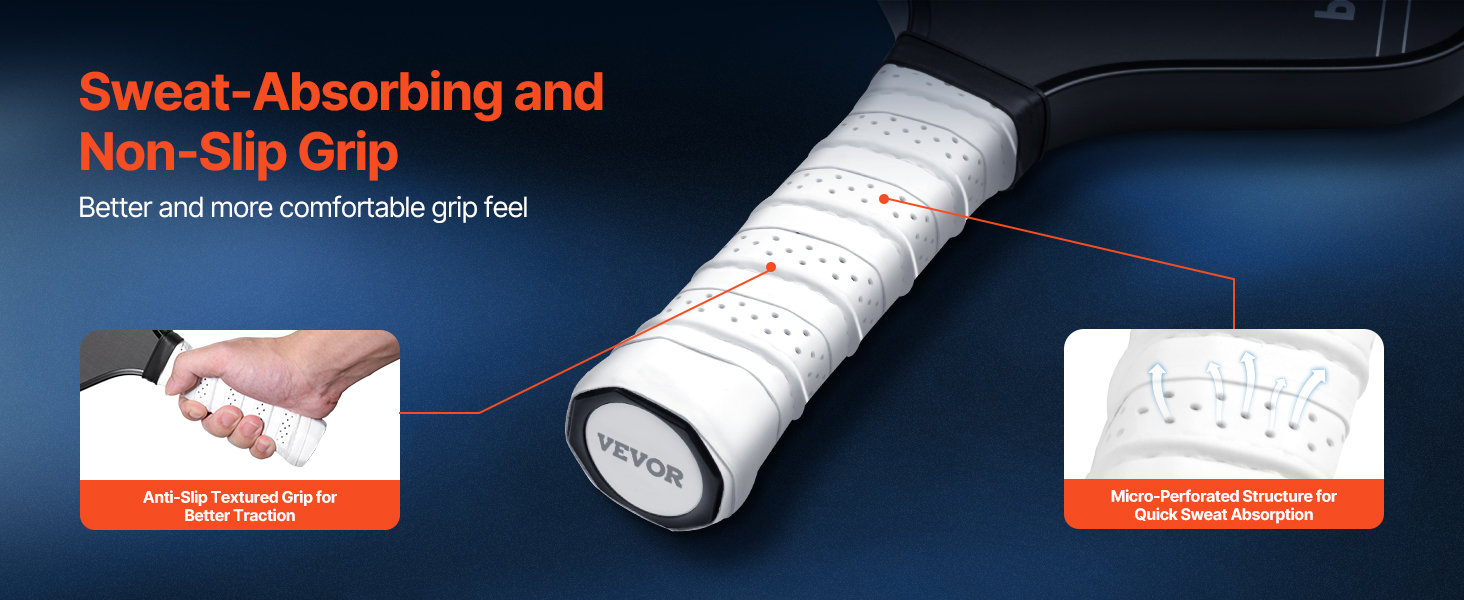 Piklebalová raketa má pot pohlcujúcu a odpruženú rukoväť, ktorá zabezpečuje stabilné držanie a dlhotrvajúci komfort počas hry. Rukoväť má perfektné rozmery, aby poskytovala maximálne pohodlie a kontrolu aj počas dlhších sedení.