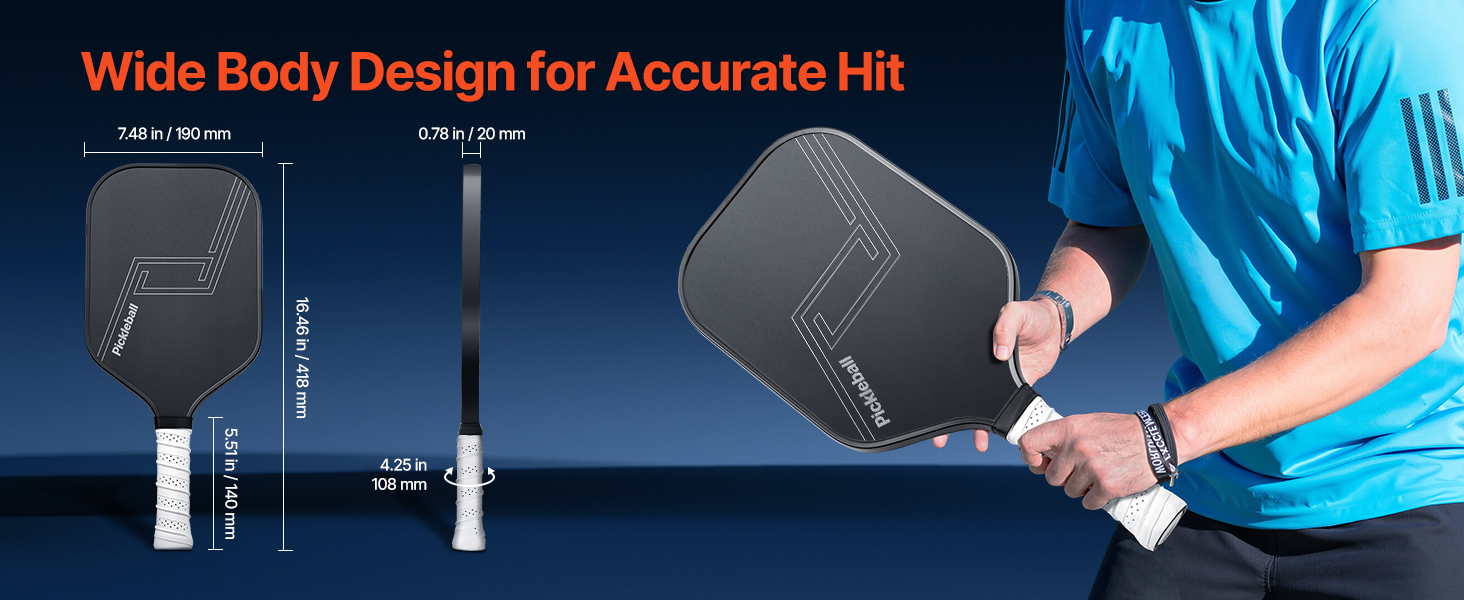 Vďaka väčšej úderovej ploche a veľkorysému sweet spotu zabezpečuje táto profesionálna pickleballová pálka dokonalý dopad loptičky. Či už ste začiatočník alebo profesionál, ľahká konštrukcia so širokým telom poskytuje vynikajúcu kontrolu a pohodlie pre príjemný zážitok z hry.