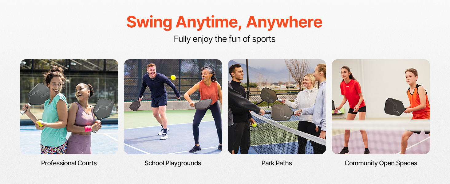 Táto pickleballová pálka je ideálna na hru v interiéri aj exteriéri, je ideálna pre rodinnú zábavu, školy, komunitné centrá alebo športové kluby. Podporuje aktívny a spoločenský životný štýl pre všetky vekové kategórie.