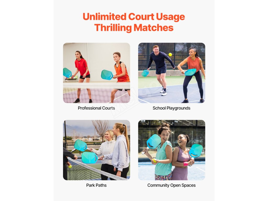 Táto pickleballová pálka je ideálna na hranie v interiéri aj exteriéri a je vhodná na rodinnú zábavu, do škôl, komunitných centier alebo športových klubov. Podporuje aktívny a spoločenský životný štýl pre všetky vekové kategórie.