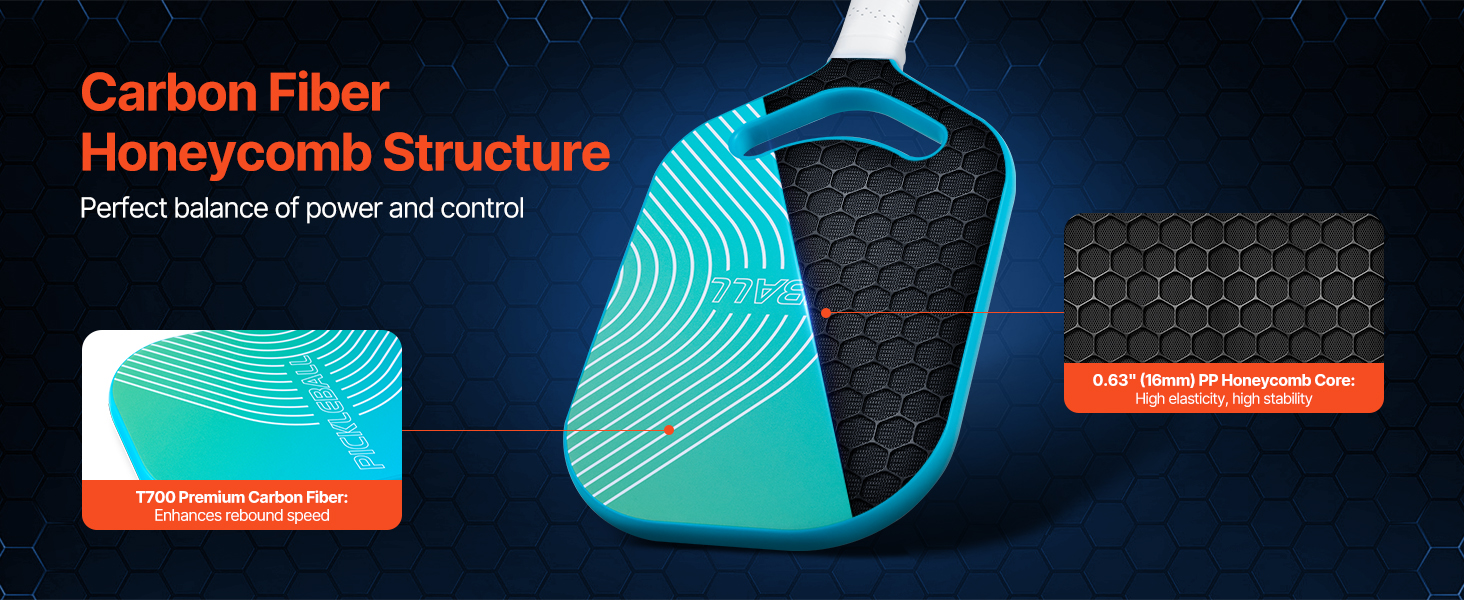 Povrch pádla je vyrobený z prémiových uhlíkových vlákien T700, ktoré zvyšujú rýchlosť odrazu a znižujú hluk pri údere. Technológia PP voštiny zvyšuje pevnosť pádla a zároveň výrazne znižuje celkovú hmotnosť.