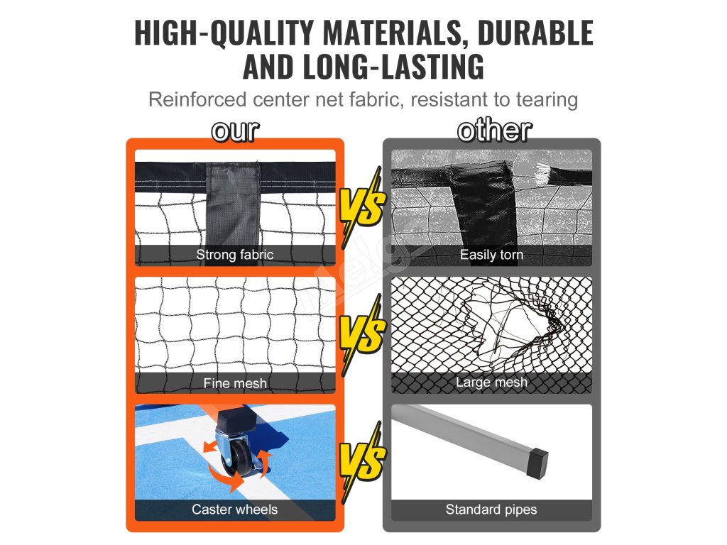 Sieť má malé otvory s PE sieťovinou na silnú obranu. Zhrubnutý kovový rám podopiera vaše pickleballové hry v rôznych nastaveniach a robustný stredový podporný stĺpik zabezpečuje nielen stabilitu vo veternom počasí, ale zároveň dvíha priečku na ochranu siete pred poškodením.