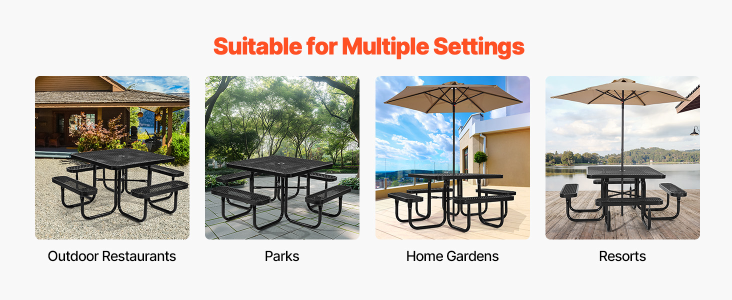 Táto súprava stola a lavice sa prispôsobí rôznym prostrediam a príležitostiam, či už poskytuje pohodlný priestor na stolovanie vo vonkajších reštauráciách, slúži ako miesto na rodinné aktivity v parkoch, alebo funguje ako hracia plocha v domácich záhradách a rekreačných zariadeniach.
