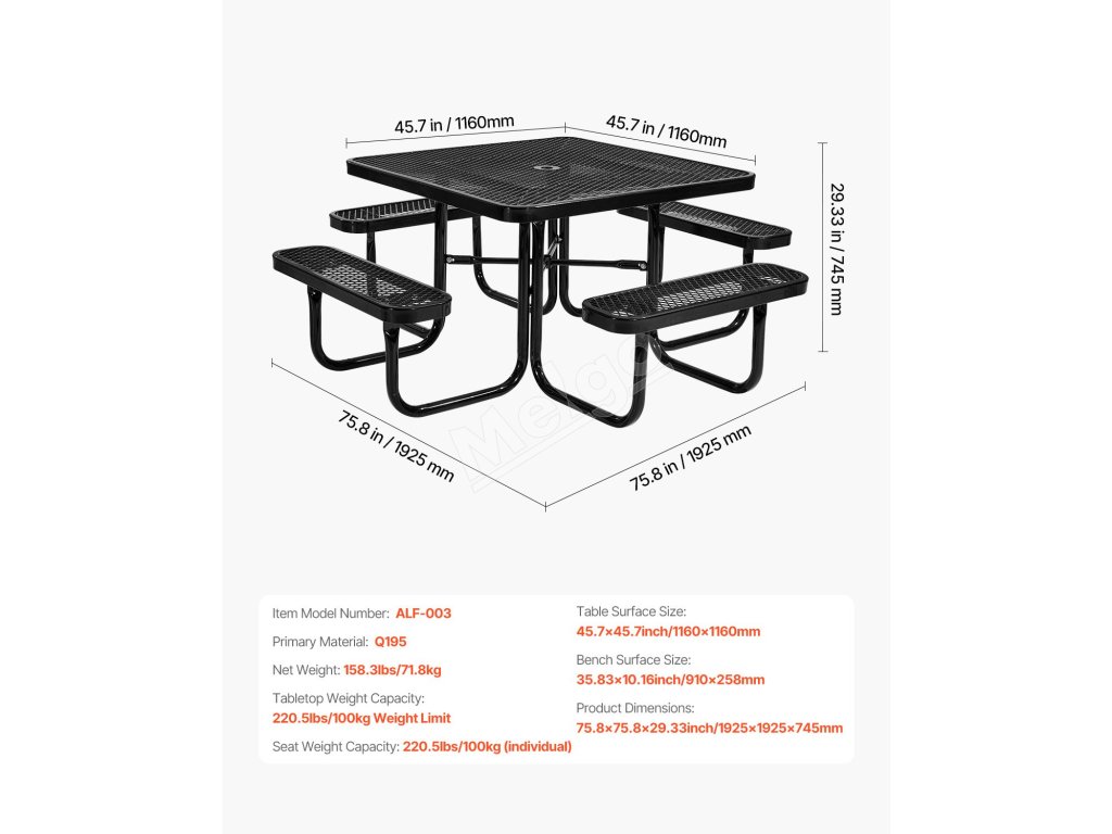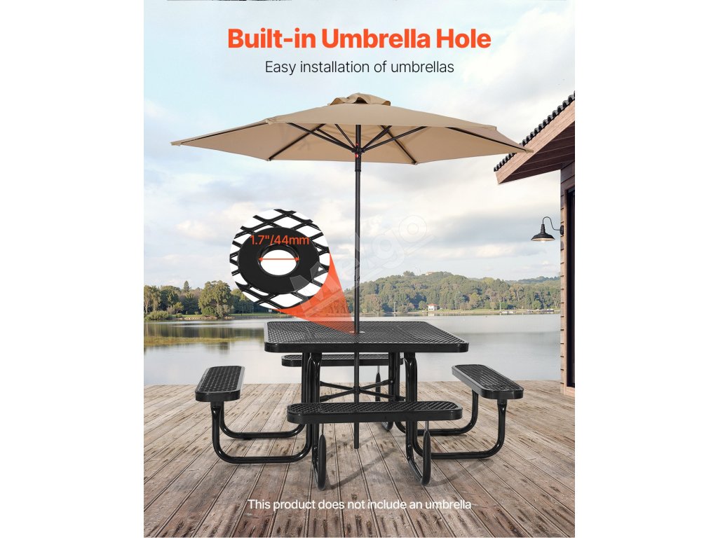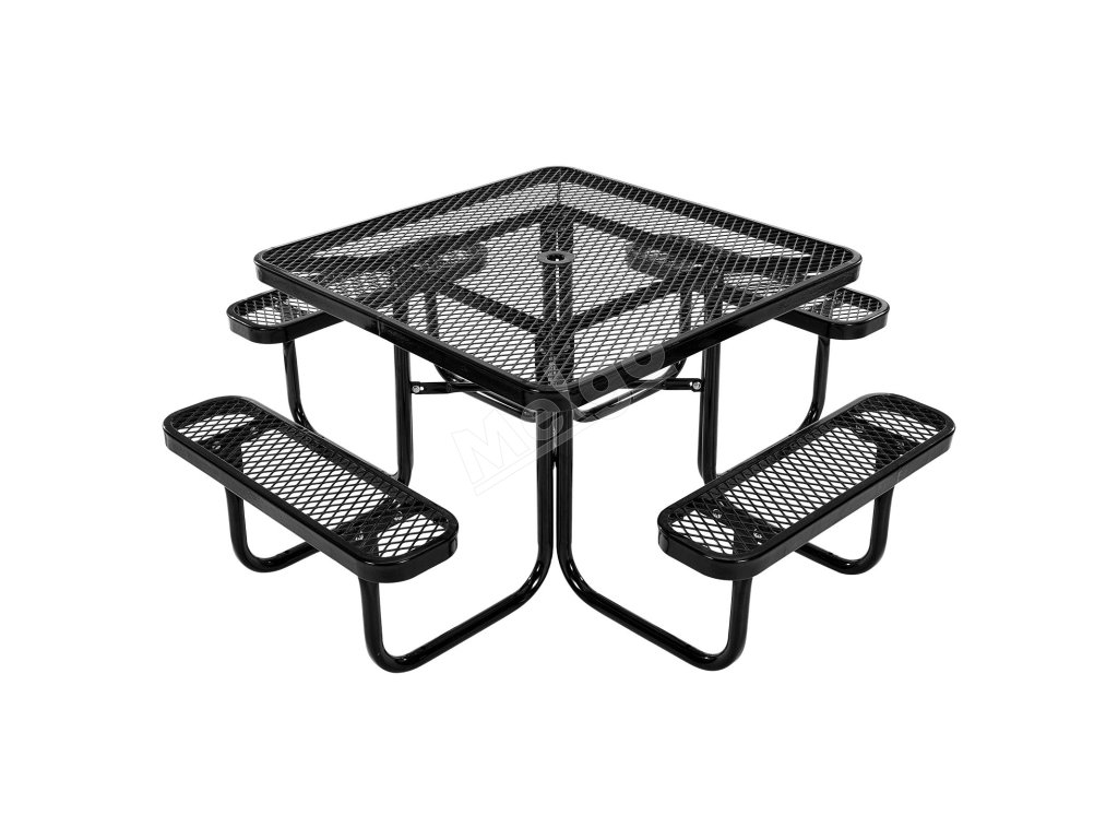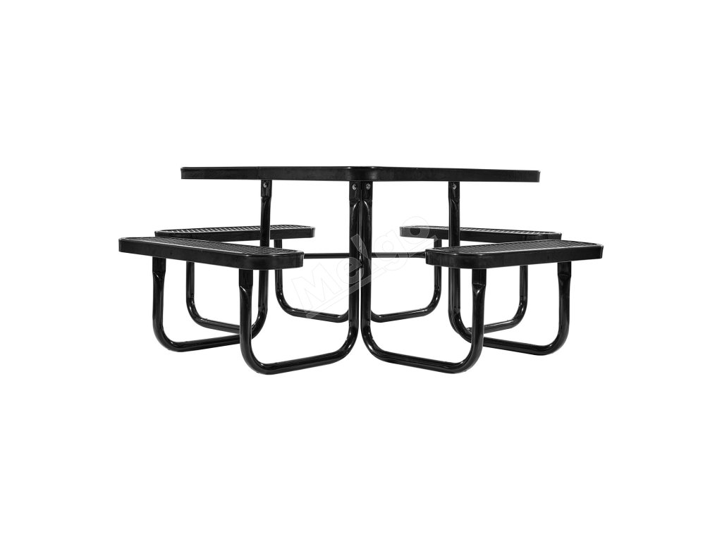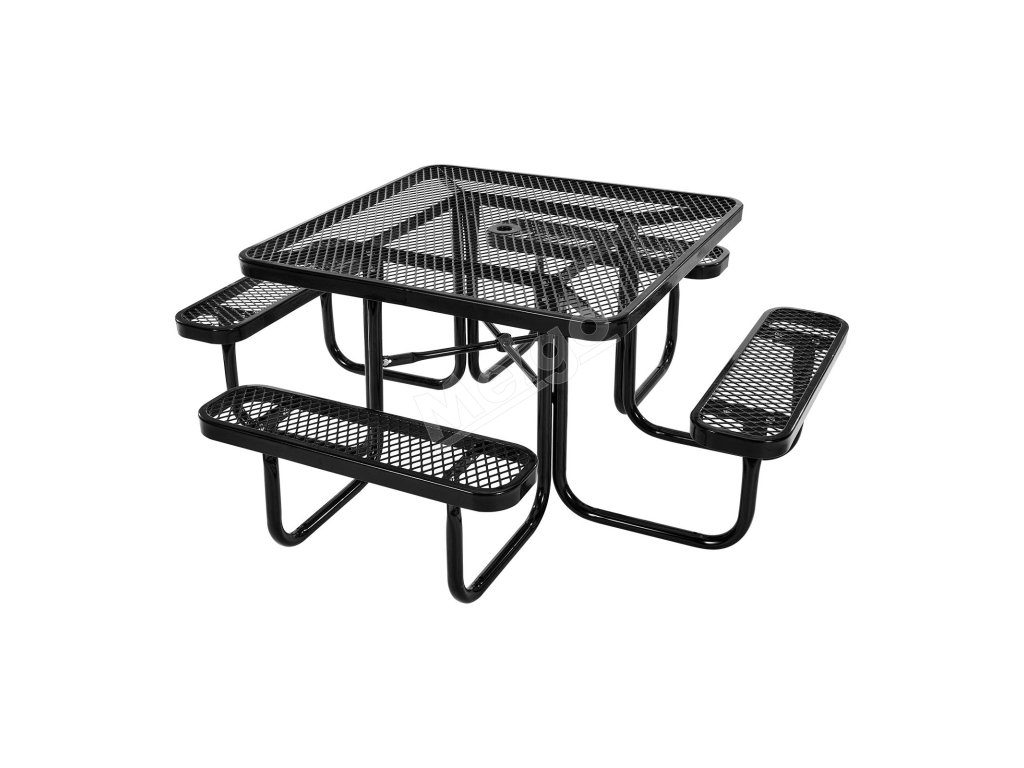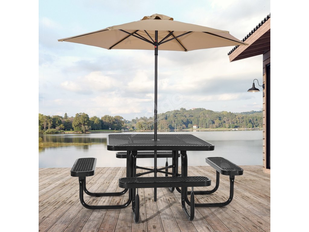 Piknikový set stôl+lavice 45.7 in×45.7 in, lak. oceľ otvor na slnečník