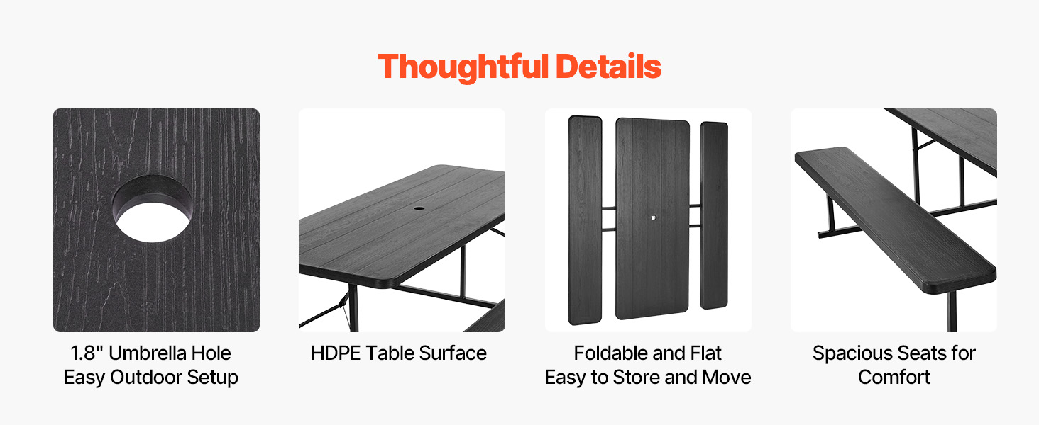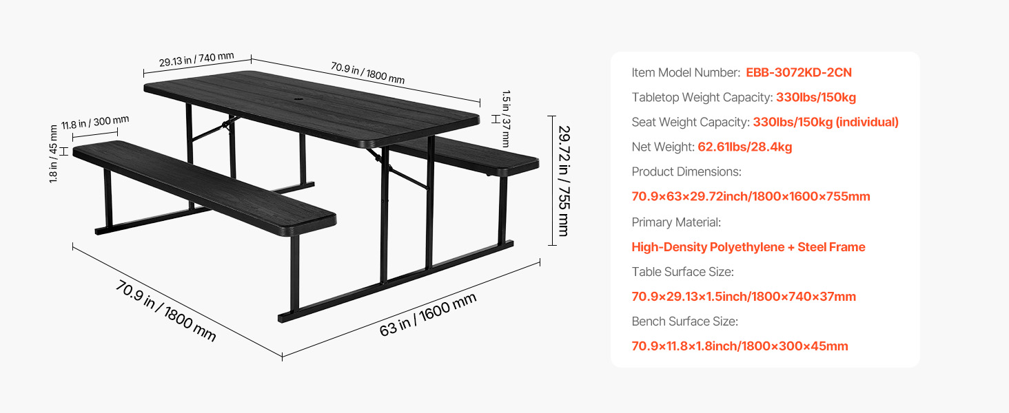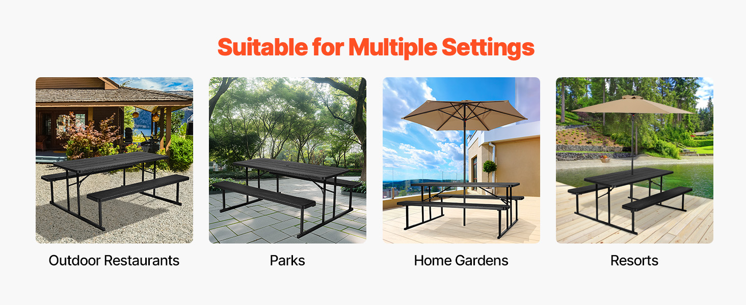 Táto súprava stola a lavice sa prispôsobí rôznym prostrediam a príležitostiam, či už poskytuje pohodlný priestor na stolovanie vo vonkajších reštauráciách, slúži ako miesto na rodinné aktivity v parkoch, alebo funguje ako hracia plocha v domácich záhradách a rekreačných zariadeniach.