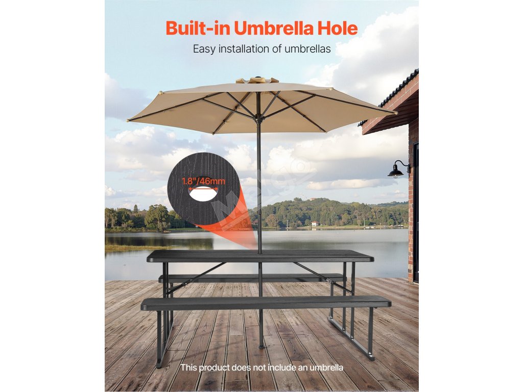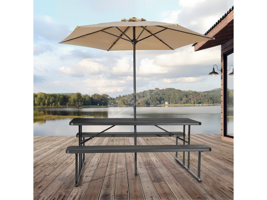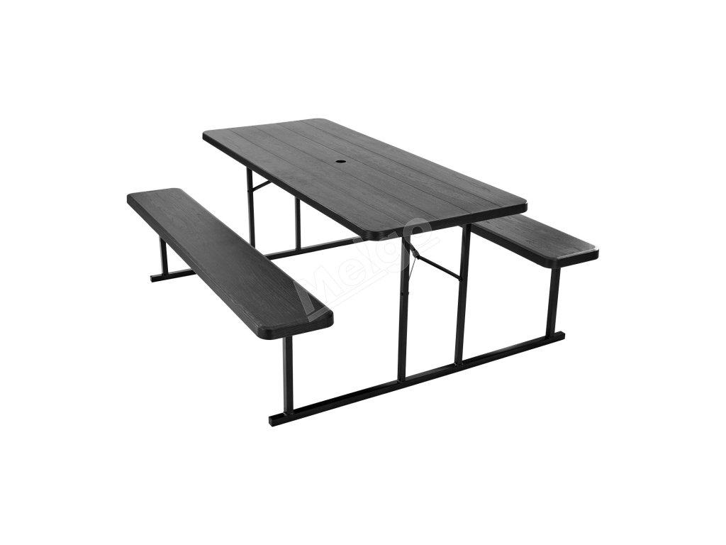 Skladací piknikový stôl 6 FT so lavicami, oceľ, otvor na dáždnik