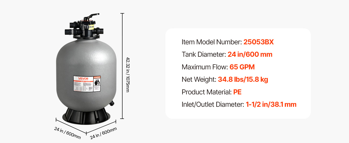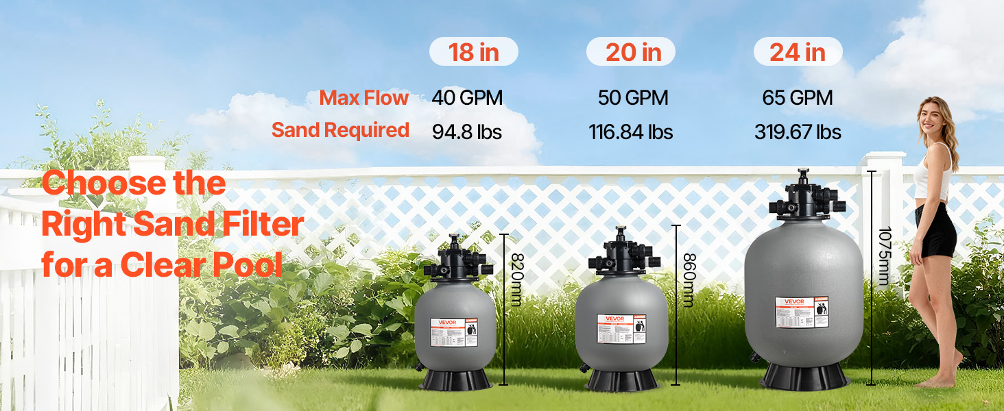 Tento bazénový pieskový filter je k dispozícii v 18-palcových, 20-palcových a 24-palcových modeloch a umožňuje vám vybrať si správnu veľkosť pre vašu bazénovú zostavu. Získajte filtračný systém, ktorý sa hodí do vášho priestoru a zodpovedá vašim potrebám pri plávaní.