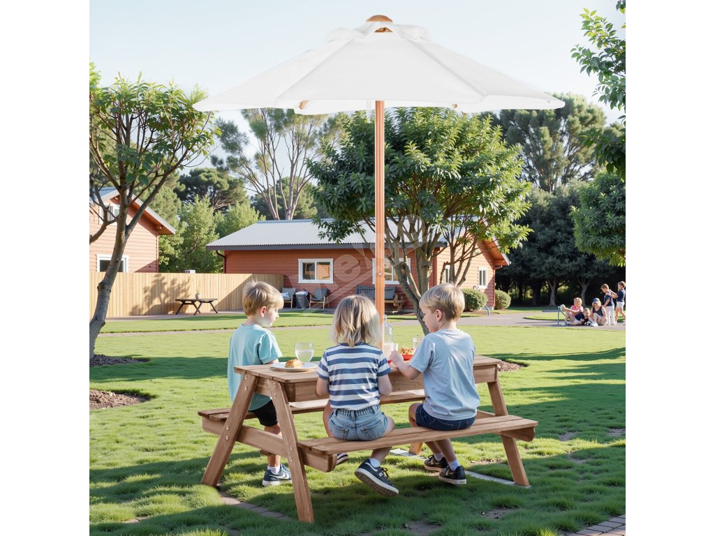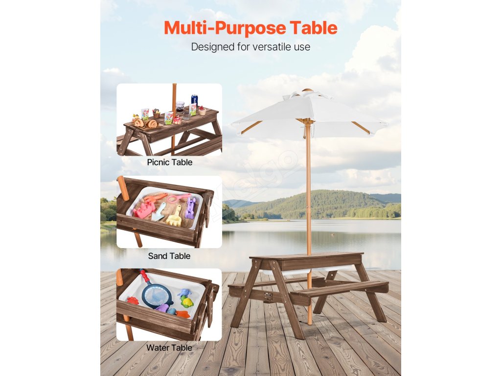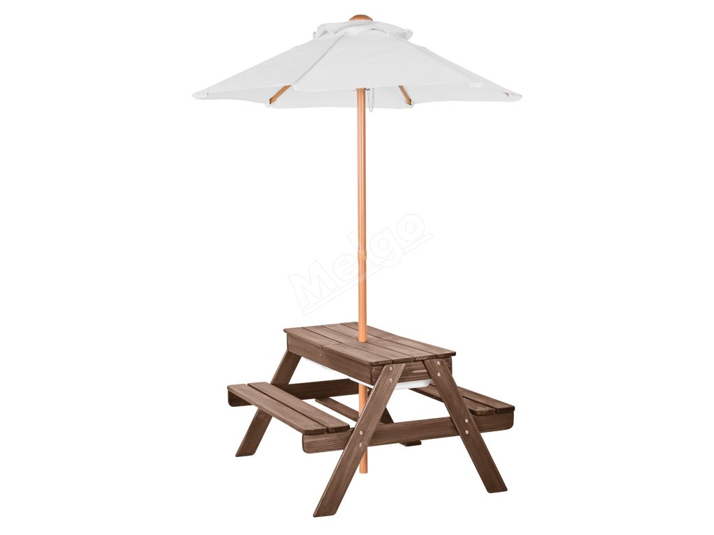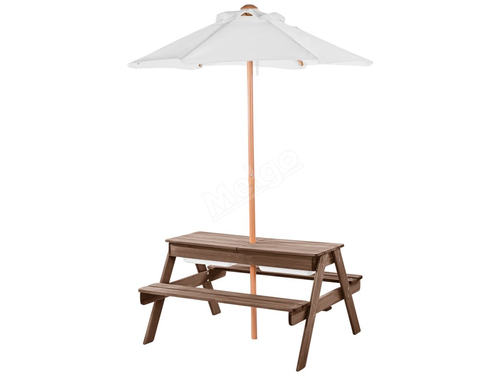 Detský piknikový stôl s dáždnikom, 3v1 piesok/voda, 4-osobný set