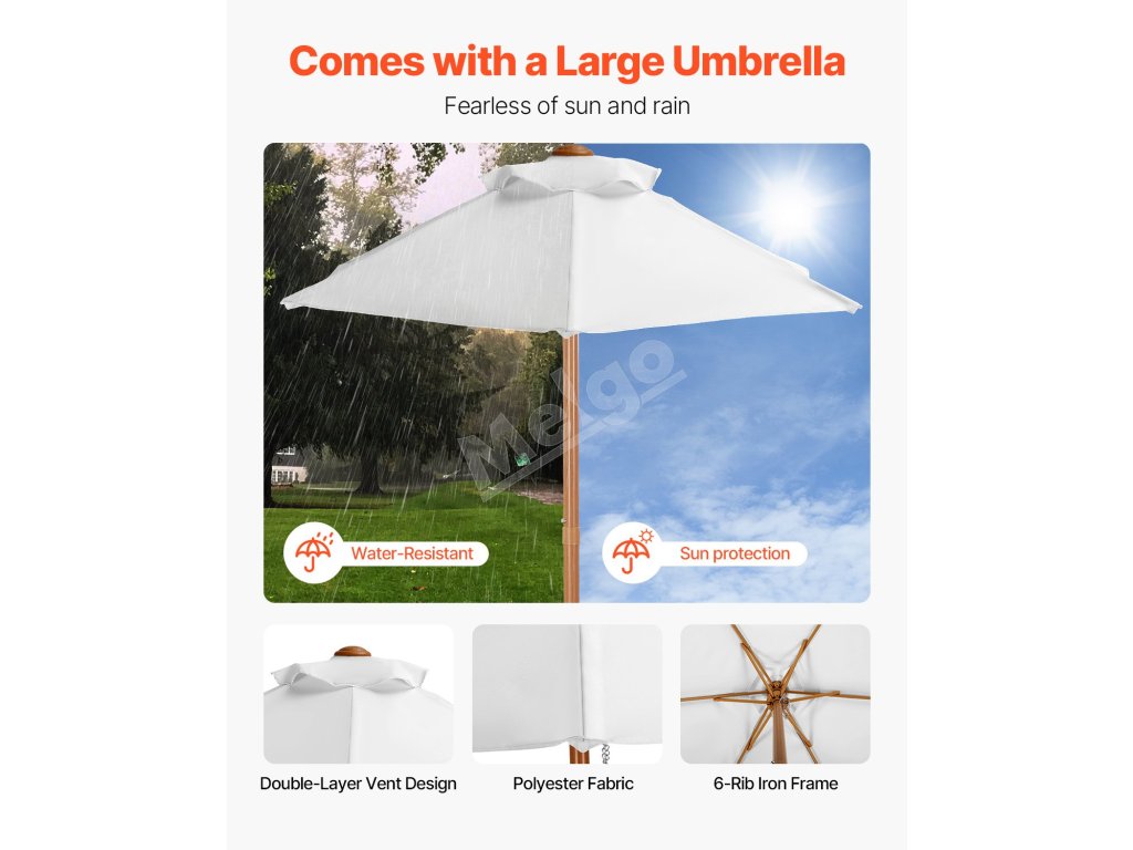 Odnímateľný a skladací slnečník účinne chráni pred slnečným žiarením pri vonkajšom používaní a vytvára chladné a príjemné prostredie. Pri presúvaní do interiéru sa dá ľahko zložiť, aby sa ušetril priestor a zachoval čistý vzhľad.