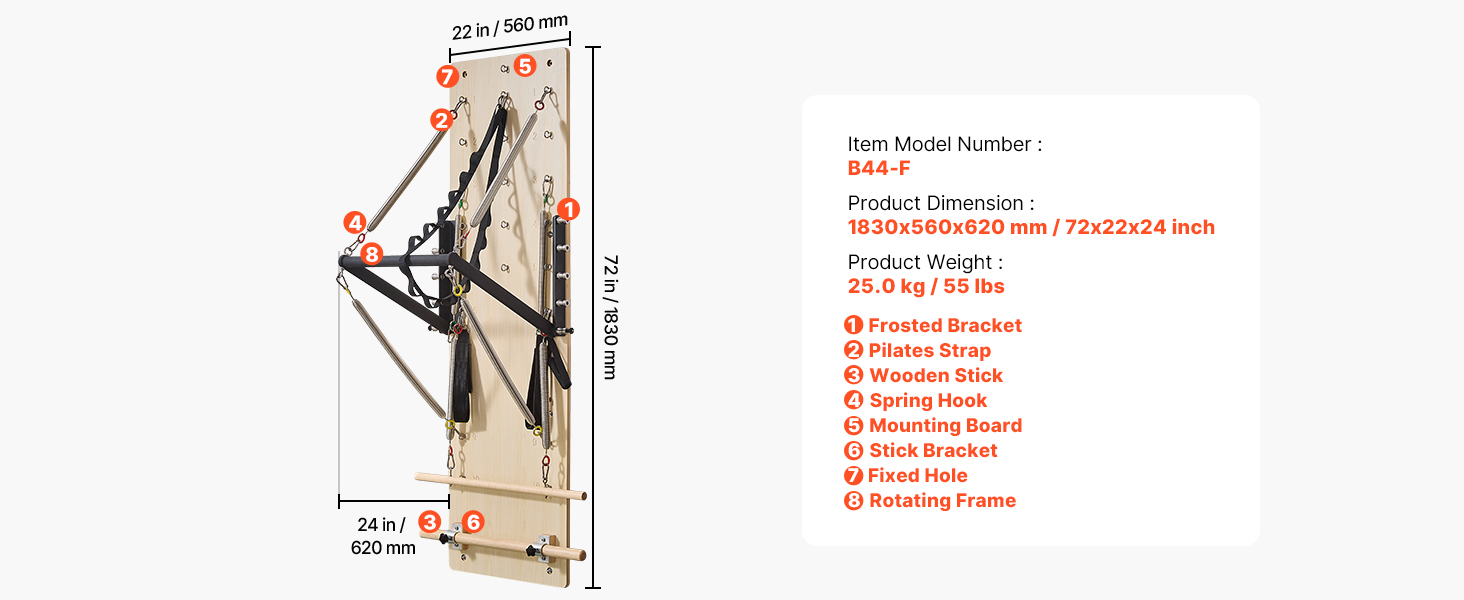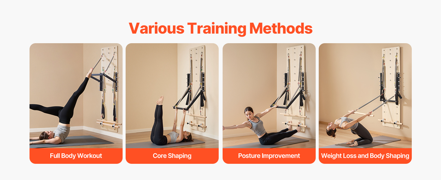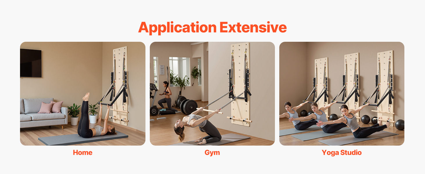 Nástenné zariadenie na cvičenie pilates je vhodné do domácich posilňovní alebo profesionálnych štúdií jogy, pomáha zlepšovať svalovú silu, formovať jadro, korigovať držanie tela a formovať postavu.