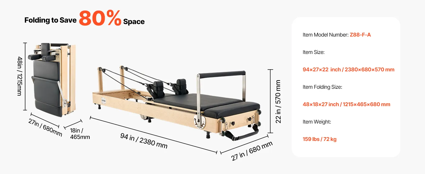 Tento pilates reformer má pohodlný skladací dizajn, ktorý umožňuje bezproblémové skladovanie, takže je ideálny na domáce použitie alebo do menších priestorov.
