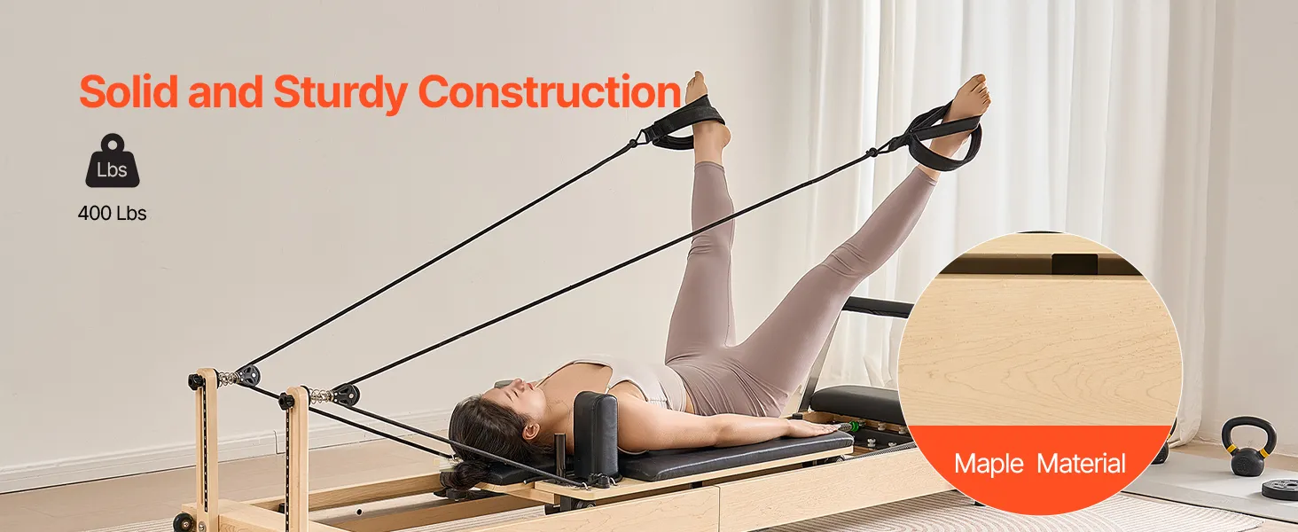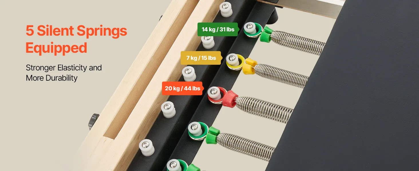 Skladací pilates reformer z dreva, dvojitý odpor, s boxom, do 400 lbs