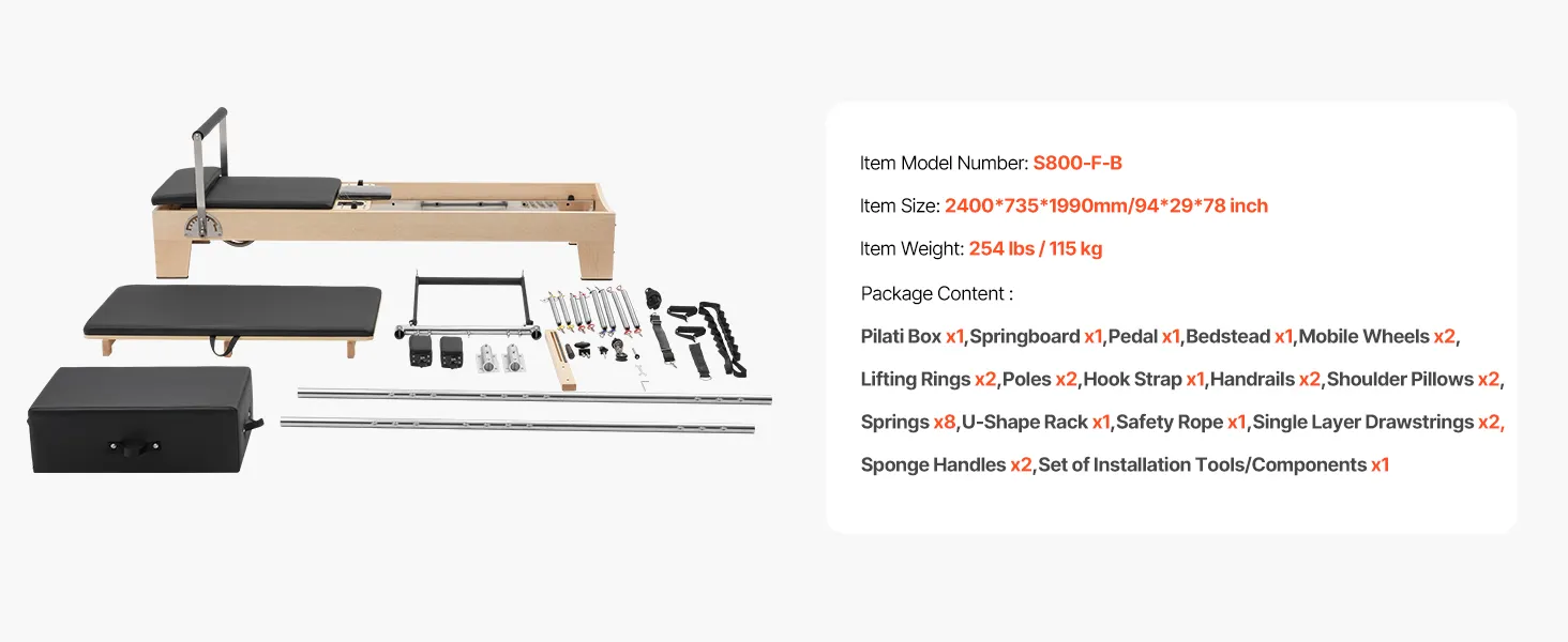 Tento multifunkčný pilates stroj 2 v 1 je navrhnutý tak, aby bol ergonomický a výškovo nastaviteľný, takže je ideálny na rôzne cvičenia. Poskytuje vám pohodlie na efektívne a účinné cvičenie.