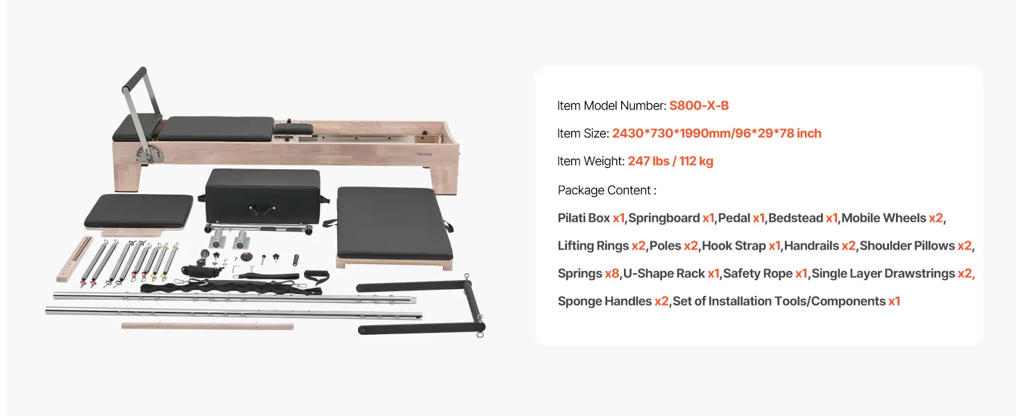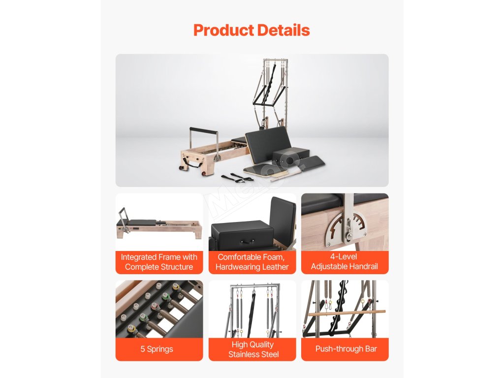 Tento multifunkčný pilates stroj 2 v 1 je navrhnutý tak, aby bol ergonomický a výškovo nastaviteľný, takže je ideálny na rôzne cvičenia. Poskytuje vám pohodlie na efektívne a účinné cvičenie.