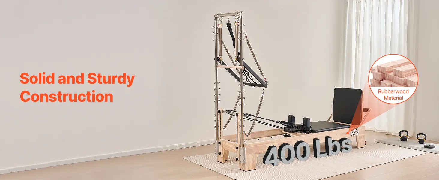 Pilates reformer drevený s duálnym odporom, box a jumpboard, 400 LBS