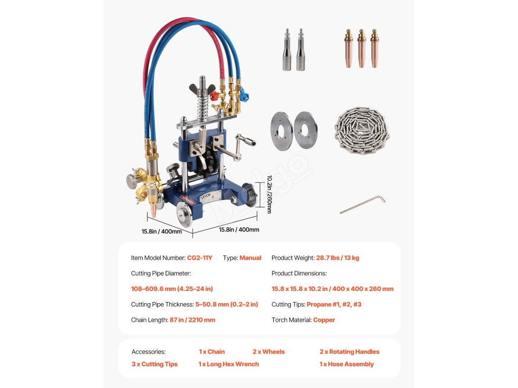 Úkosovačka rúr je dodávaná so všetkým základným príslušenstvom, ako sú rezacie hroty a svorky na rúry, čo znižuje dodatočné výdavky a čas. Jeho jednoduchá montáž umožňuje začínajúcim používateľom rýchlo ho nastaviť a začať pracovať.