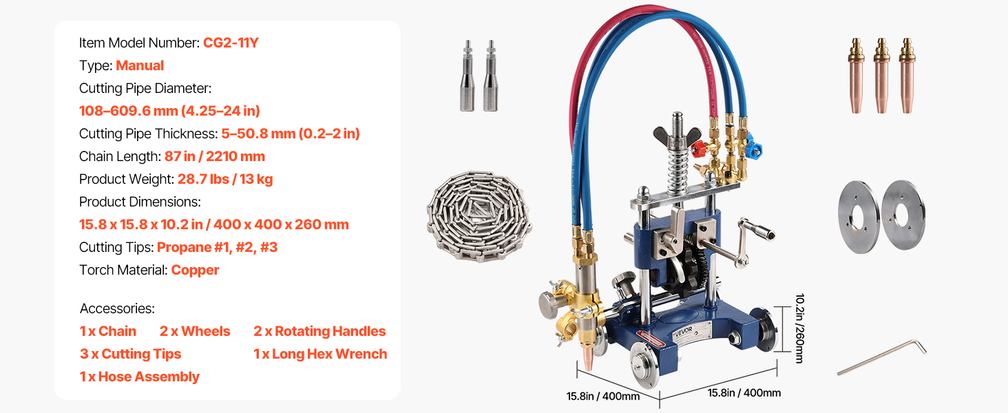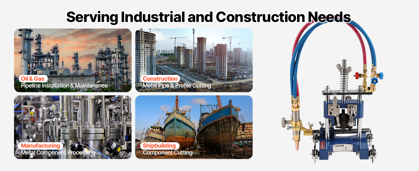 Či už ide o inštaláciu a údržbu potrubia v ropnom a plynárenskom priemysle alebo rezanie kovových rúr na staveniskách, táto plynová rezačka na skosenie rúr s horákom dokáže efektívne a presne plniť úlohy, čím pomáha zvyšovať efektivitu práce.