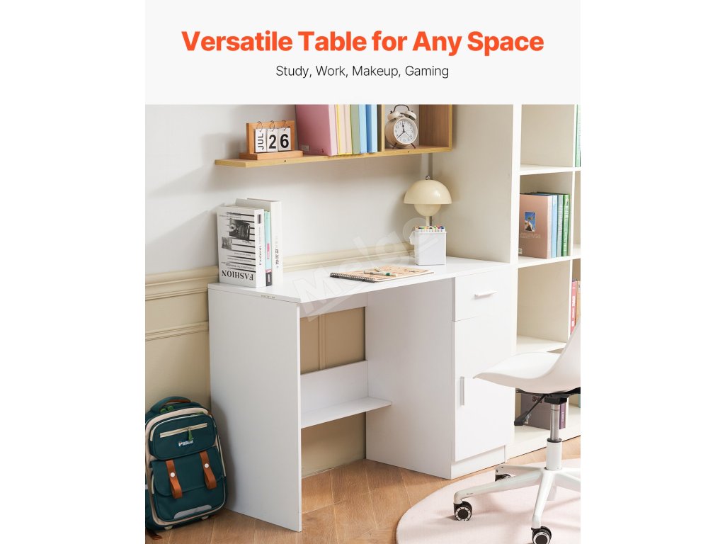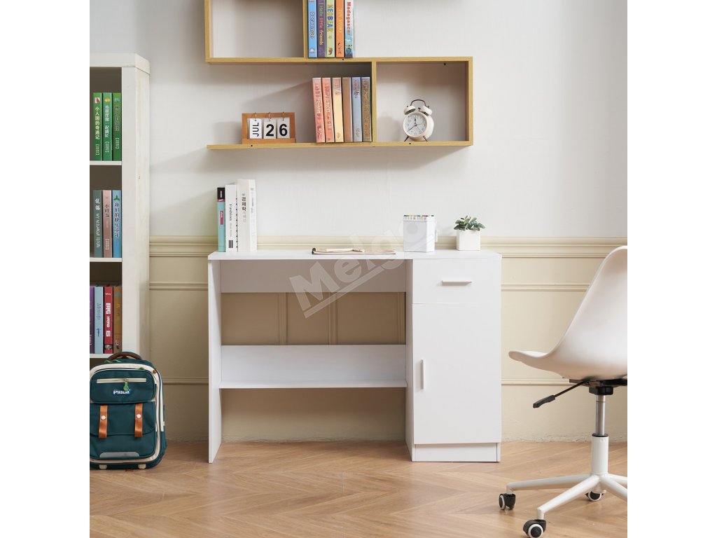 Malý písací stôl s zásuvkou, detský mdf obdĺžnik s policou, biely
