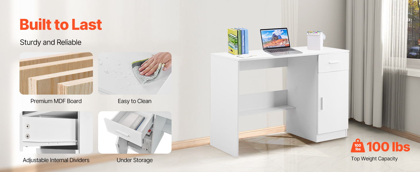Tento písací stôl je vyrobený z MDF a je odolný voči deformáciám a opotrebovaniu, takže je ideálnou voľbou na dlhodobé používanie.