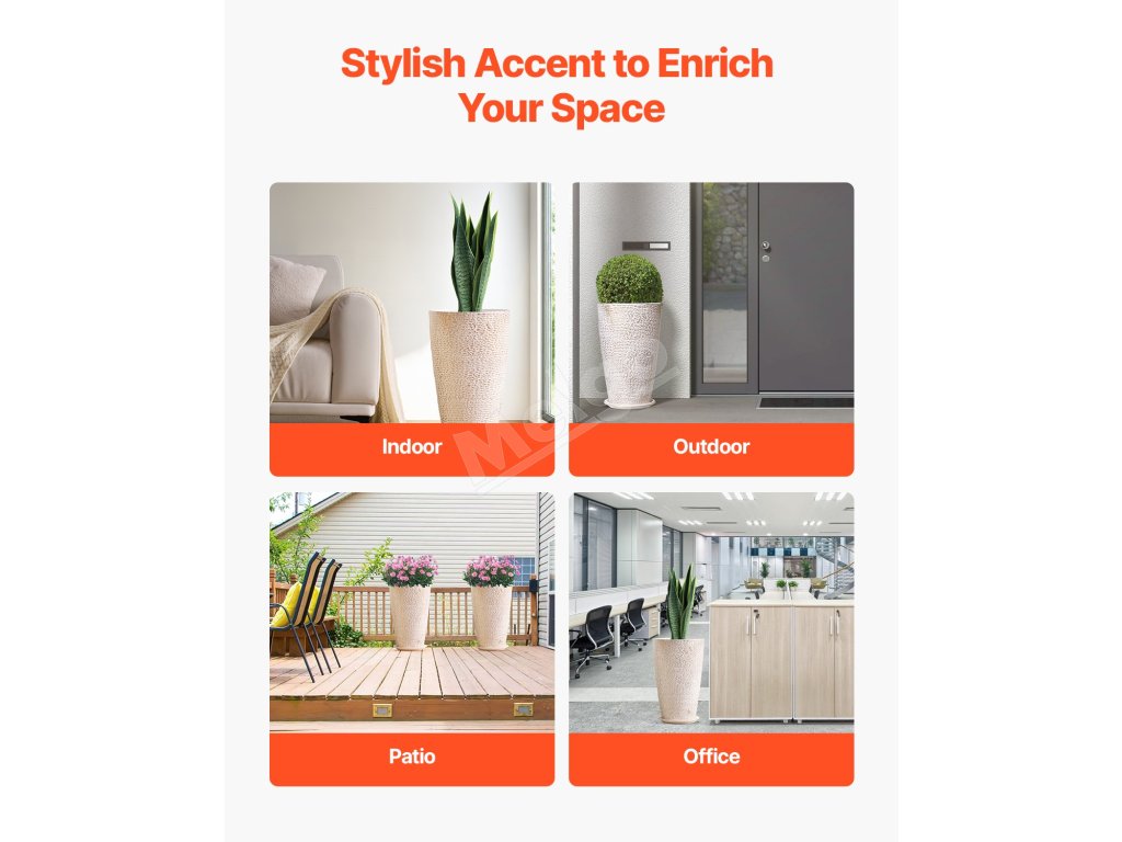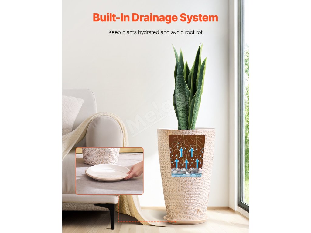 Tento vysoký kvetináč spája elegantný dizajn s odolnými materiálmi a obohatí váš priestor o prirodzený pôvab. Vďaka účinnému drenážnemu systému a spoľahlivému vonkajšiemu výkonu prináša život do každého kúta a bez námahy vylepšuje vaše obytné prostredie!