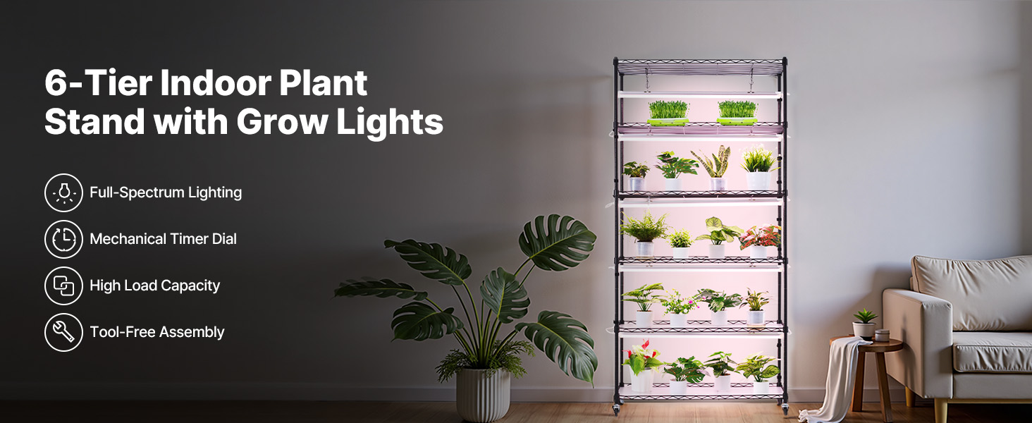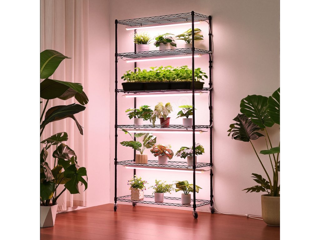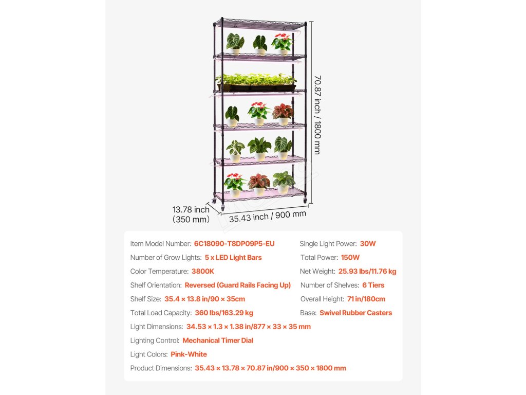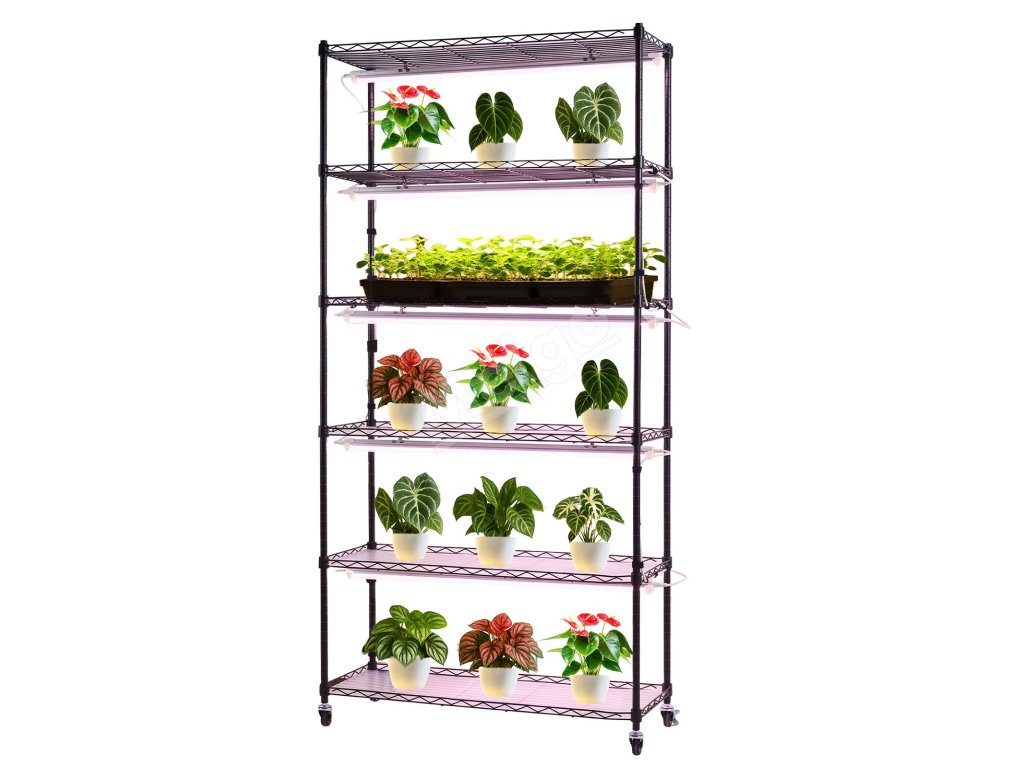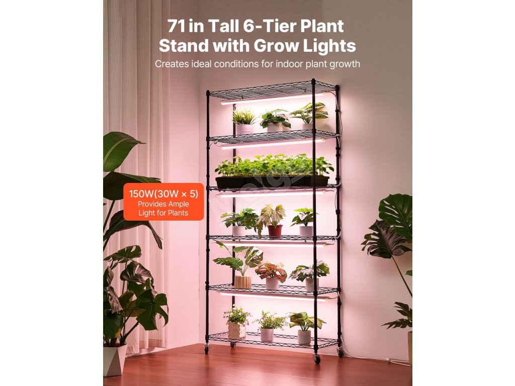 Rastlinný stojan so svetlom 6-políc 180cm 150W/3800K kolieska časovač