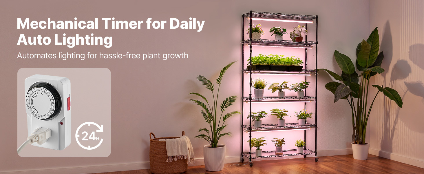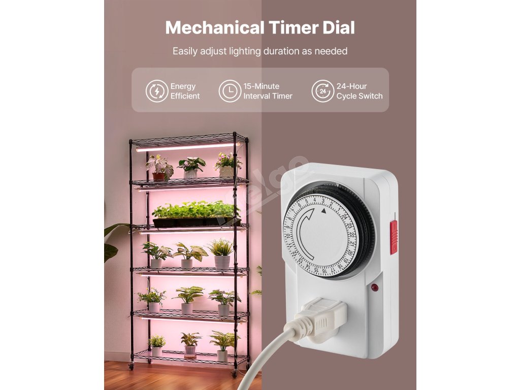 Jednoduchý otočný časovač vyžaduje len jedno nastavenie pre denné automatické cykly zapnutia/vypnutia. Aj počas cestovania dostanú vaše rastliny stálu starostlivosť bez obáv.