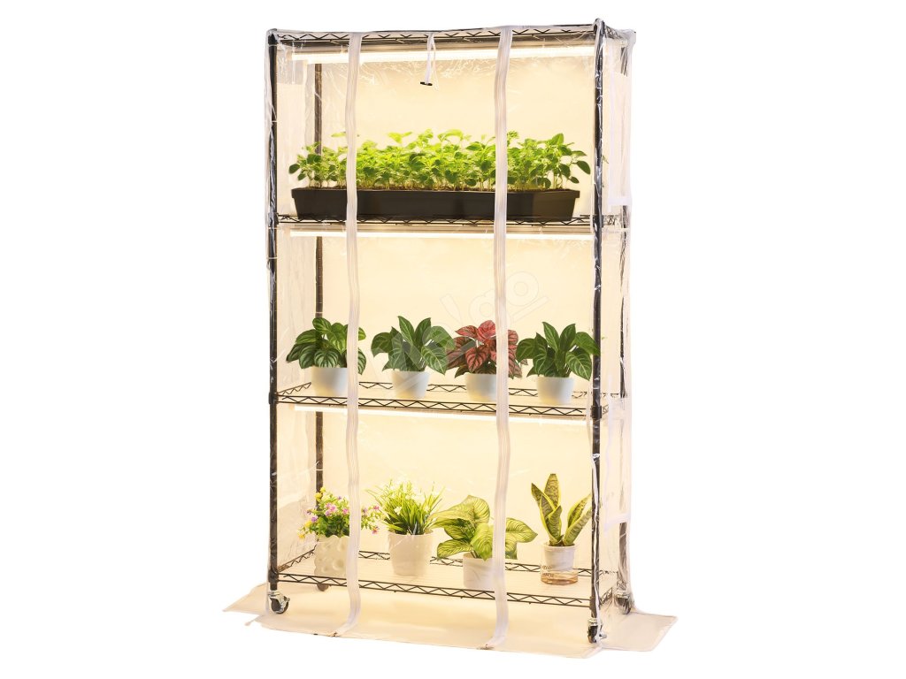 Tento viacúrovňový stojan na rastliny je navrhnutý s pestovateľskými svetlami a plastovým krytom skleníka a je ideálny na pestovanie v interiéri. Poskytuje dostatok priestoru pre všetky vaše rastliny a zároveň podporuje zdravý rast - vaša vlastná domáca minizáhrada.