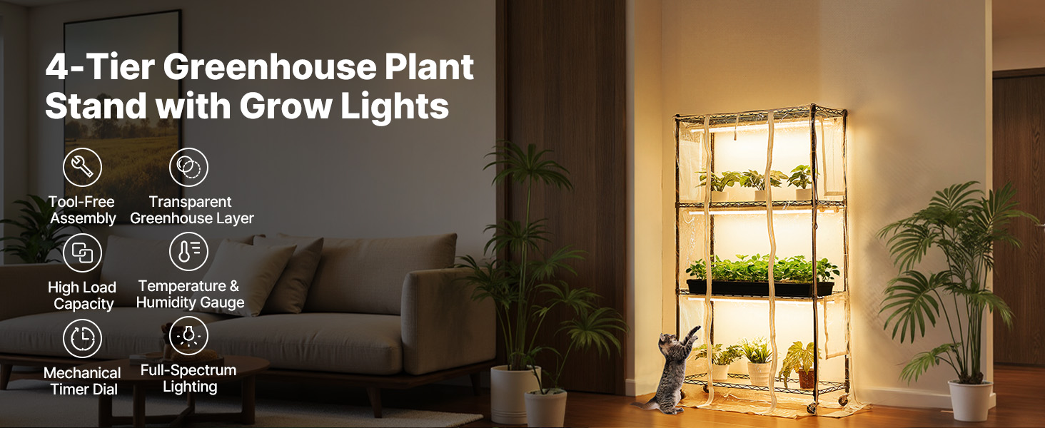 Priehľadný kryt a plnospektrálne LED pestovateľské svetlá vytvárajú ideálnu rovnováhu teploty a vlhkosti. Stojan na rastliny s rastovým svetlom podporuje každú fázu od sadenice až po zber, čím vám pomáha dosahovať vyššiu úspešnosť.