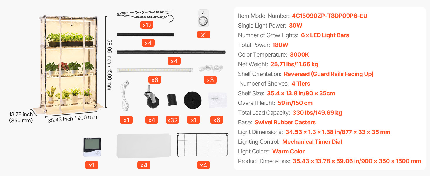 Polička na pestovateľské osvetlenie Obsahuje všetko príslušenstvo a zrozumiteľné pokyny. Nie je potrebné žiadne náradie ani zložité kroky - rýchlo nastavte a užívajte si záhradkárčenie v interiéri bez stresu.