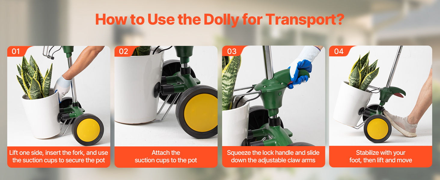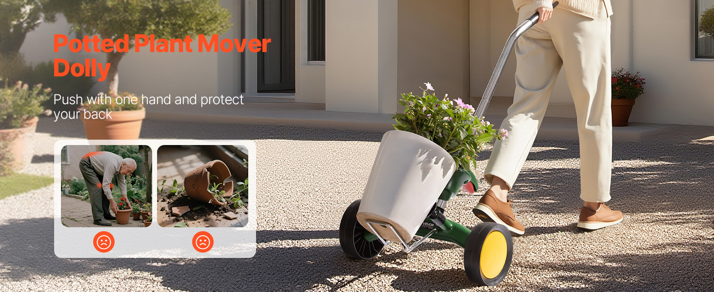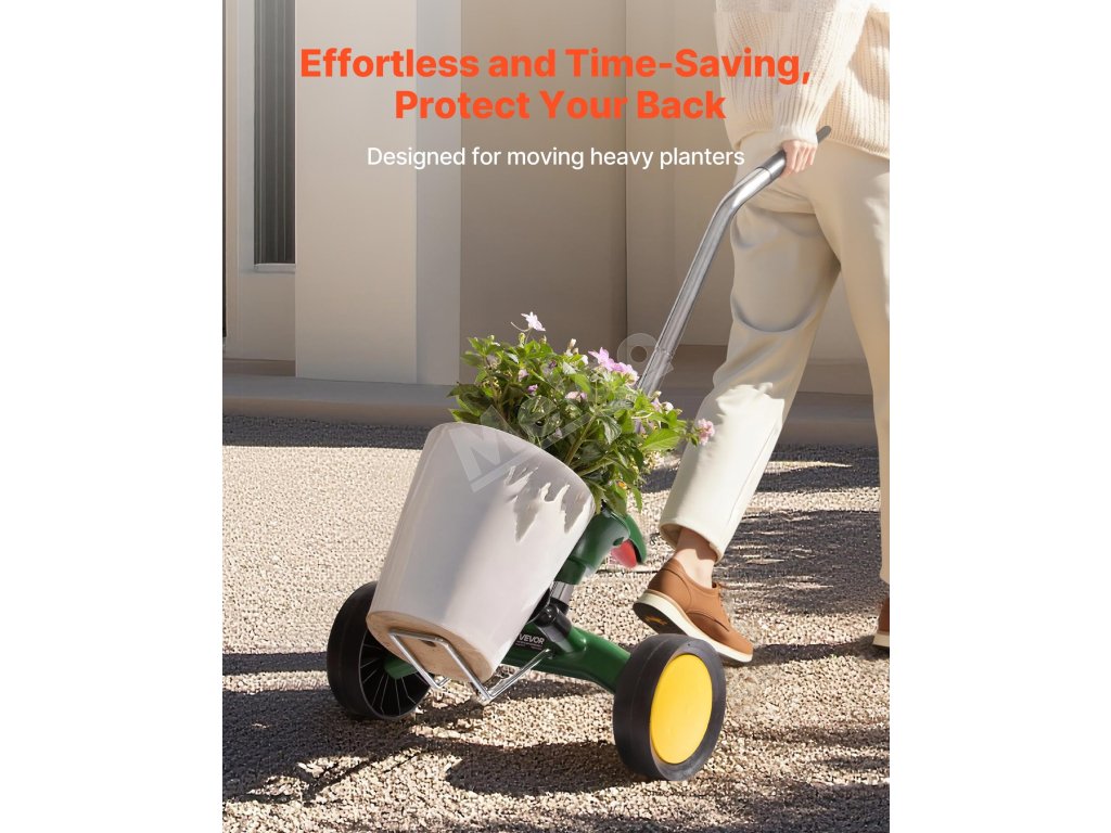 Tento vozík na prenášanie ťažkých črepníkových rastlín je ideálny pre záhrady, balkóny alebo veľké izbové rastliny. Znižuje fyzickú námahu počas prepravy a zároveň chráni podlahy pred poškriabaním. Ideálny pre skúsených záhradkárov aj začiatočníkov.