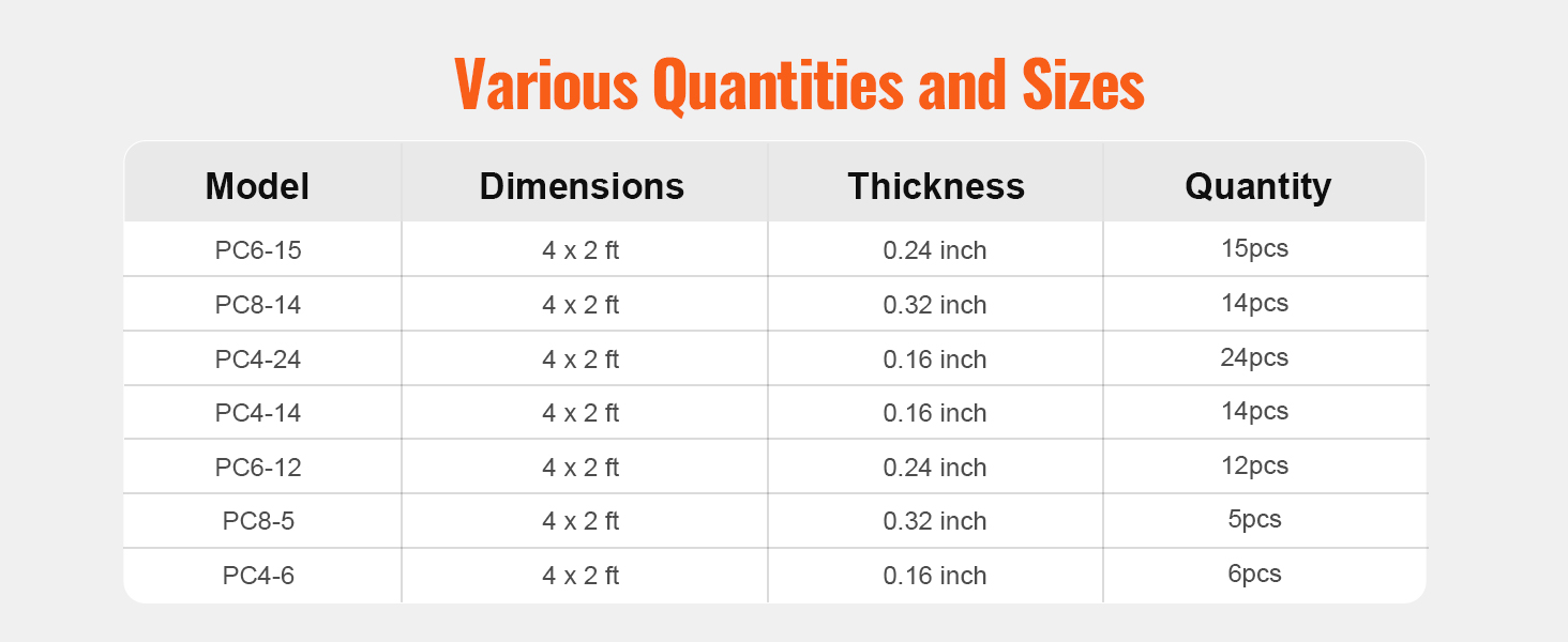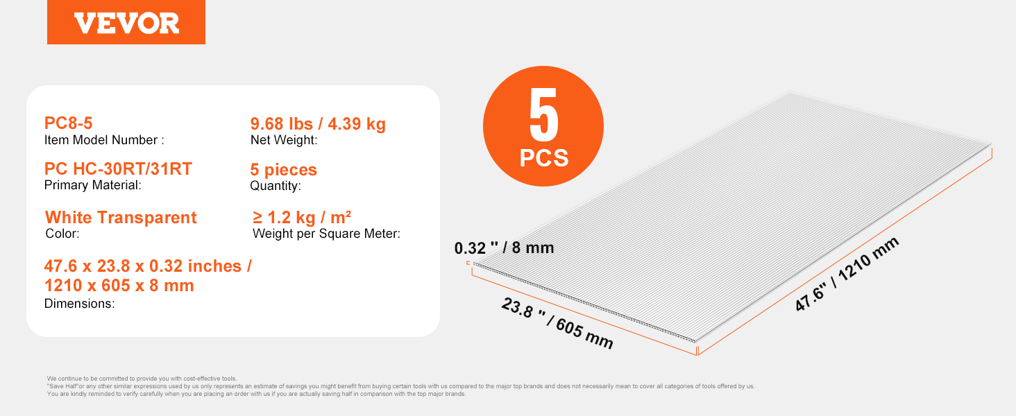 Polykarbonátové strešné dosky do skleníka 5 ks 2'×4'×0.32'' vlnité uv