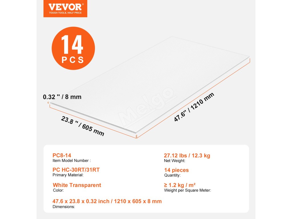 Polykarbonátové vlnité strešné dosky na skleník 14 ks 2'×4'×0.32'' uv