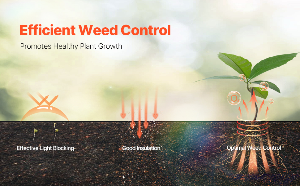 Čierny povrch je vysoko nepriehľadný, účinne blokuje slnko a obmedzuje rast buriny, čím chráni vaše kvety, zeleninu a iné rastliny pred invazívnou burinou.