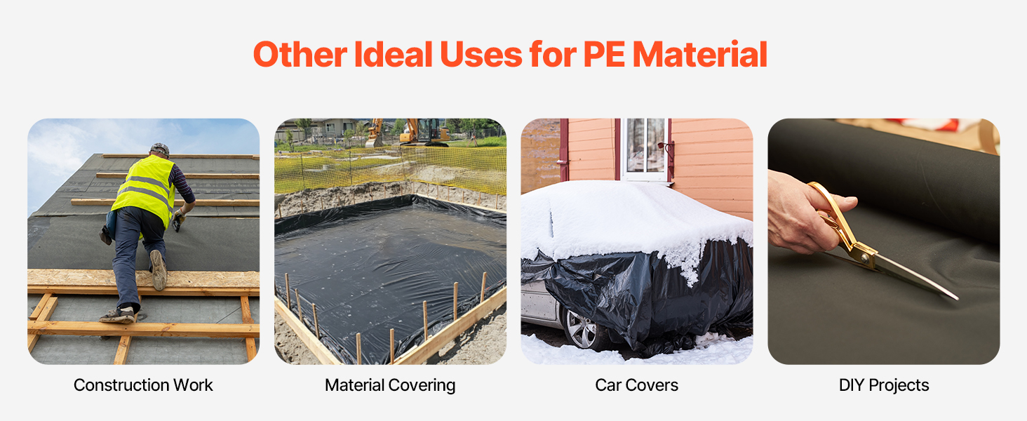 Táto plastová fólia funguje ako bariéra proti burine, bariéra proti vlhkosti, ochranná vrstva proti náteru, protiprašný kryt alebo štít proti postreku. Široko sa používa na ochranu oplotenia, izoláciu, prevenciu proti vlhkosti, blokovanie svetla a ďalšie účely, vhodné pre potreby poľnohospodárstva aj stavebníctva.