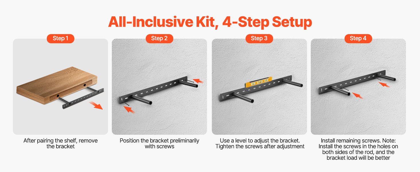 Tieto nástenné policové konzoly sa dodávajú v rôznych veľkostiach od 16 do 46 palcov, čo umožňuje flexibilné kombinácie na vytvorenie domáceho priestoru na mieru.