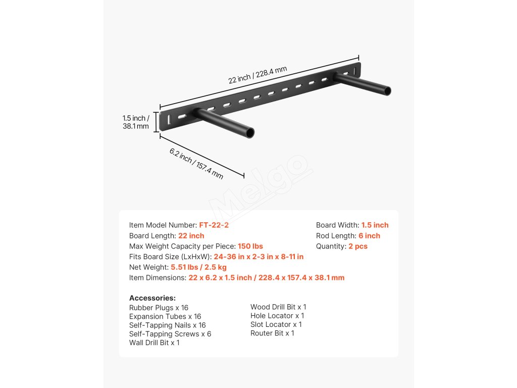 Skryté držiaky na plávajúce police 150 lbs/68 kg, 558.4×157.4×38.1 mm