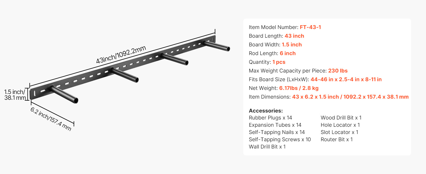 | Rozmery položky | 43 x 6,2 x 1,5 palca / 1092,2 x 157,4 x 38,1 mm |