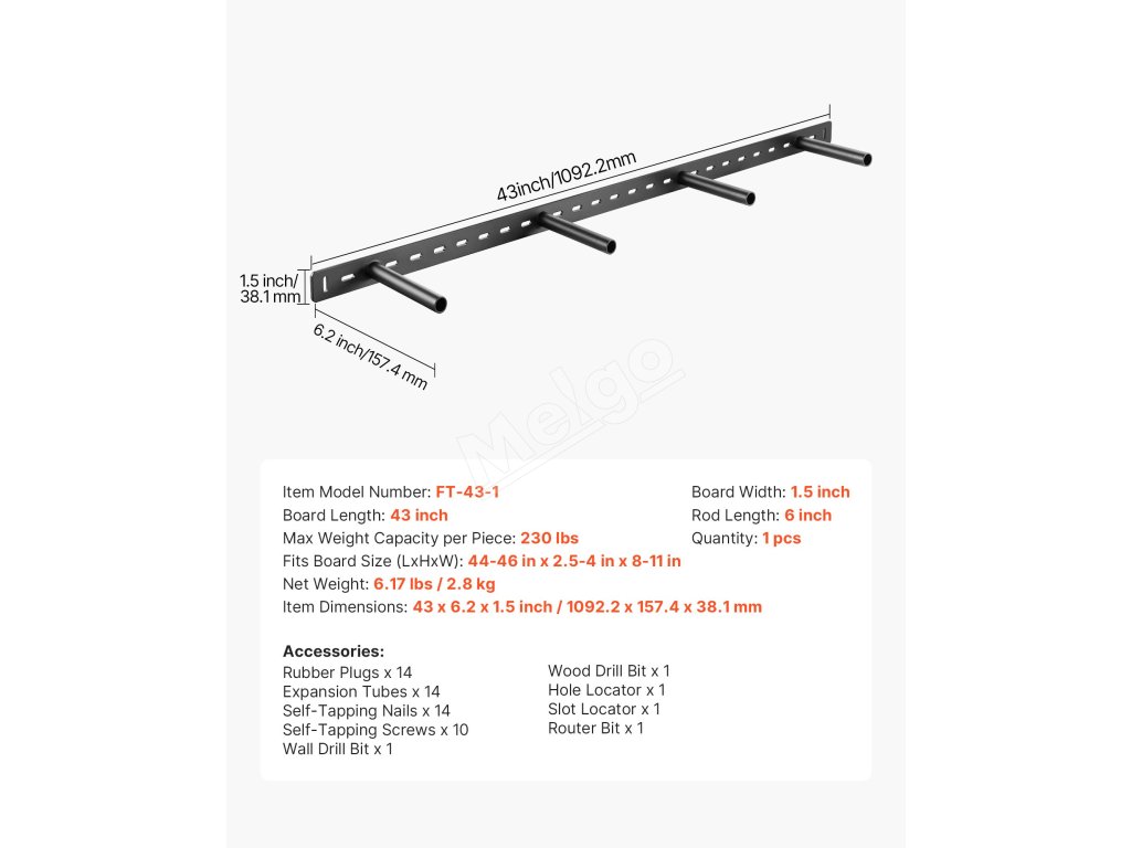 | Rozmery položky | 43 x 6,2 x 1,5 palca / 1092,2 x 157,4 x 38,1 mm |