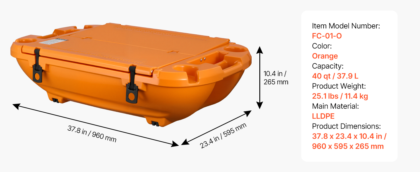 Táto chladiaca taška s objemom 40 qt je vhodná na použitie na vode aj na súši. Pridajte ľad a uchovajte v nej nápoje, jedlo a výbavu počas kempovania, výletov na pláž, rybolovu a iných outdoorových aktivít.