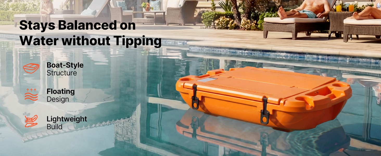 Táto plávajúca chladiaca taška má tvrdú škrupinu v kombinácii s hrubou izoláciou pre dlhotrvajúce chladenie. Je navrhnutá pre vystavenie slnku a vonkajšie použitie a pomáha udržať ľad dlhšie, aby uložené veci zostali studené.